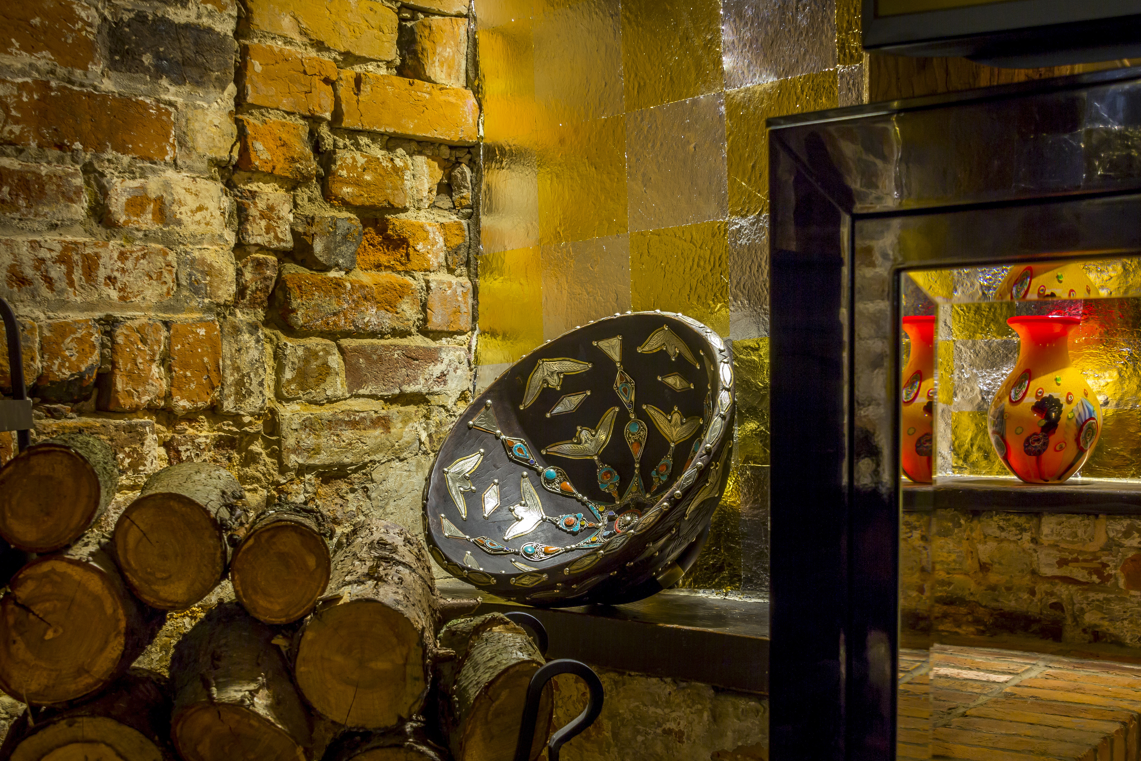 Underneath layers of old wallpaper the client had found 19th Century hand painted murals. The brief was to tastefully add a vibrant colour scheme to this lounge & bar design, complementing those found in the wall murals. Our clients had distinctive art and sculpture collected on their world-wide travels; this inspired us to bring in unique bold patterns to reflect the personalities of the various cultures they loved to visit.