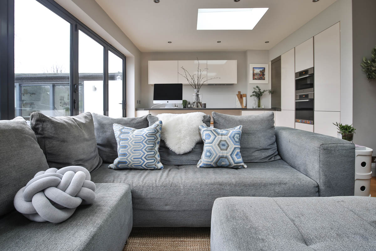 This small yet perfectly formed 1930’s Wimbledon home was completely refurbished throughout. A large open plan living space was created with the addition of a rear extension, making a modern and light filled family room. The space was carefully zoned to blend together informal seating, dining and a kitchen area. The clean architectural lines of the off-white handle less kitchen meets the needs of this busy family’s lives who love to entertain, using the kitchen island for socialising with family and friends or for working from home.