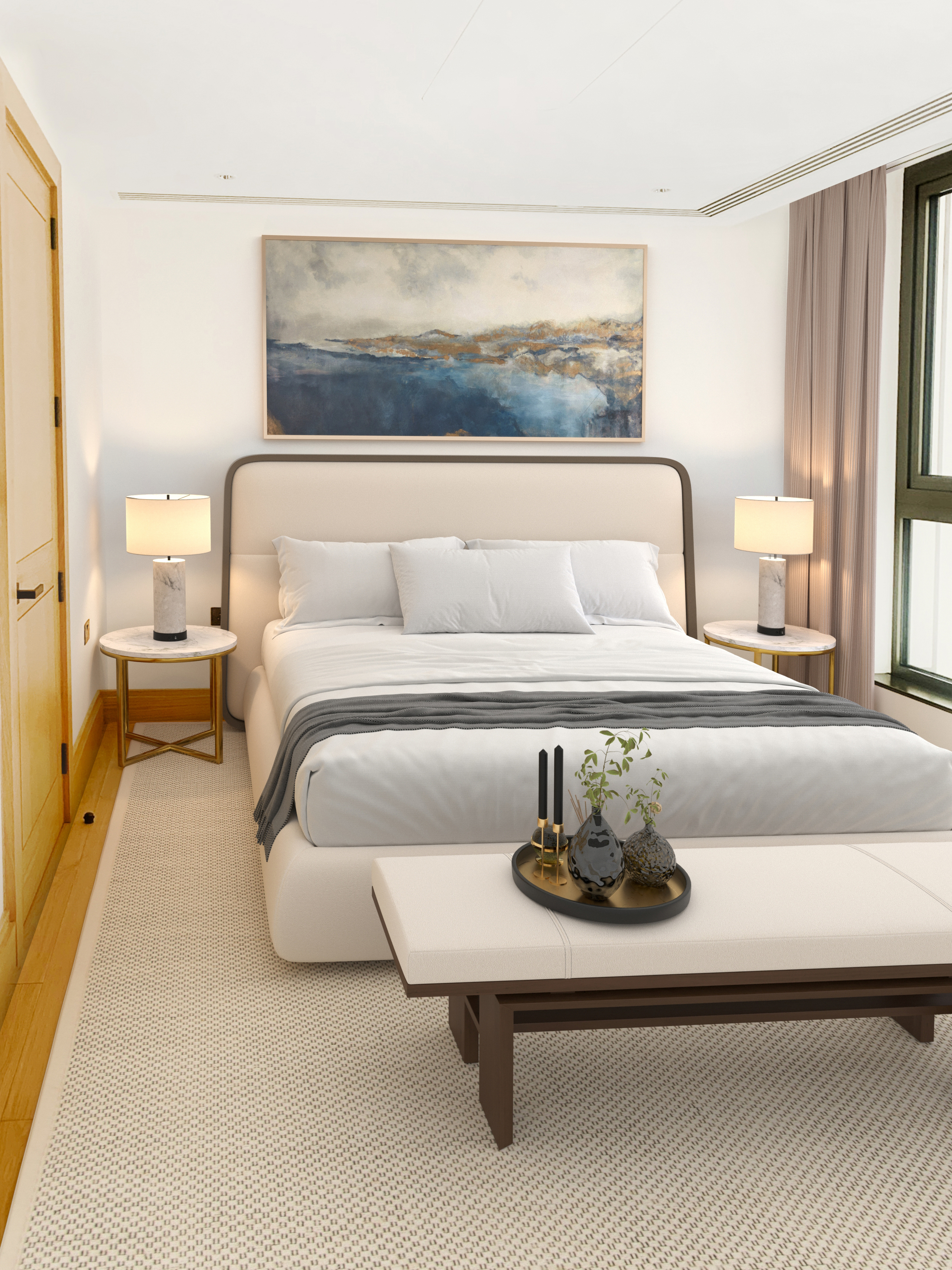 This project involved transforming an empty one-bedroom apartment into a beautiful, relaxing space located in one of Berkeley's latest developments, Abell and Cleland House in Westminster. Our team provided furniture specification and procurement, decoration, lighting, and project management for supply and installation.