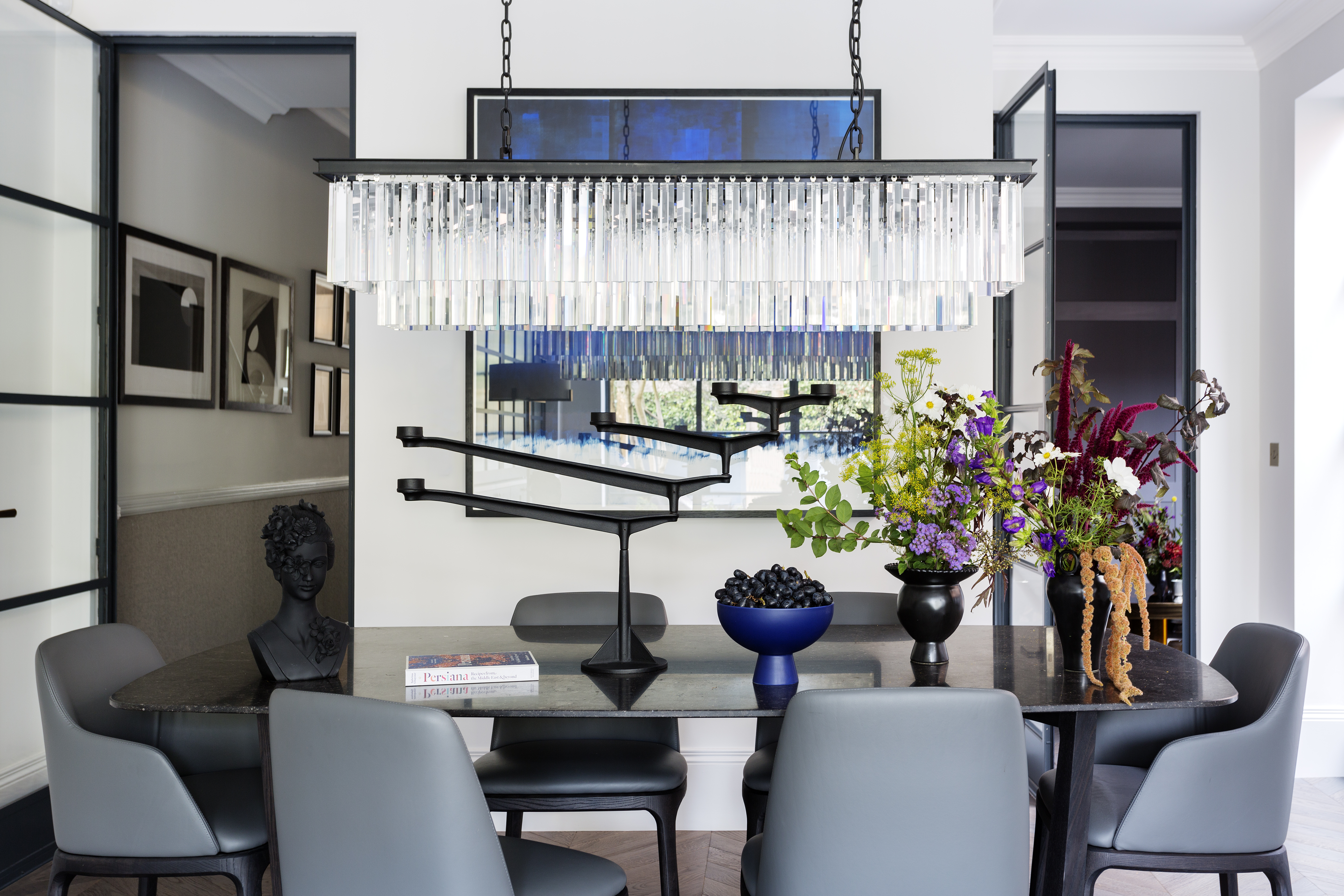 A detached Edwardian villa set over three storeys, the owners of this property wanted to turn their home into a sophisticated space the whole family could enjoy. As avid foodies and cooks, the family wanted an open kitchen-dining area where they could entertain their friends, with plentiful storage and a connection to the garden. Our design team reconfigured the ground floor and added a small rear and side extension to open the space for a huge kitchen and dining area, with a bank of Crittall windows leading to the garden. Ultra-marine blue became the starting point for the kitchen and ground floor design – this fresh hue extends to the garden to unite indoors and outdoors. The snug was the darkest room so we created a cool and cosy space with elegant wall-panelling, a low corner sofa, stylish wall lamps and a wood-burning stove. It’s now the family’s favourite room, as they gather here for movie nights.