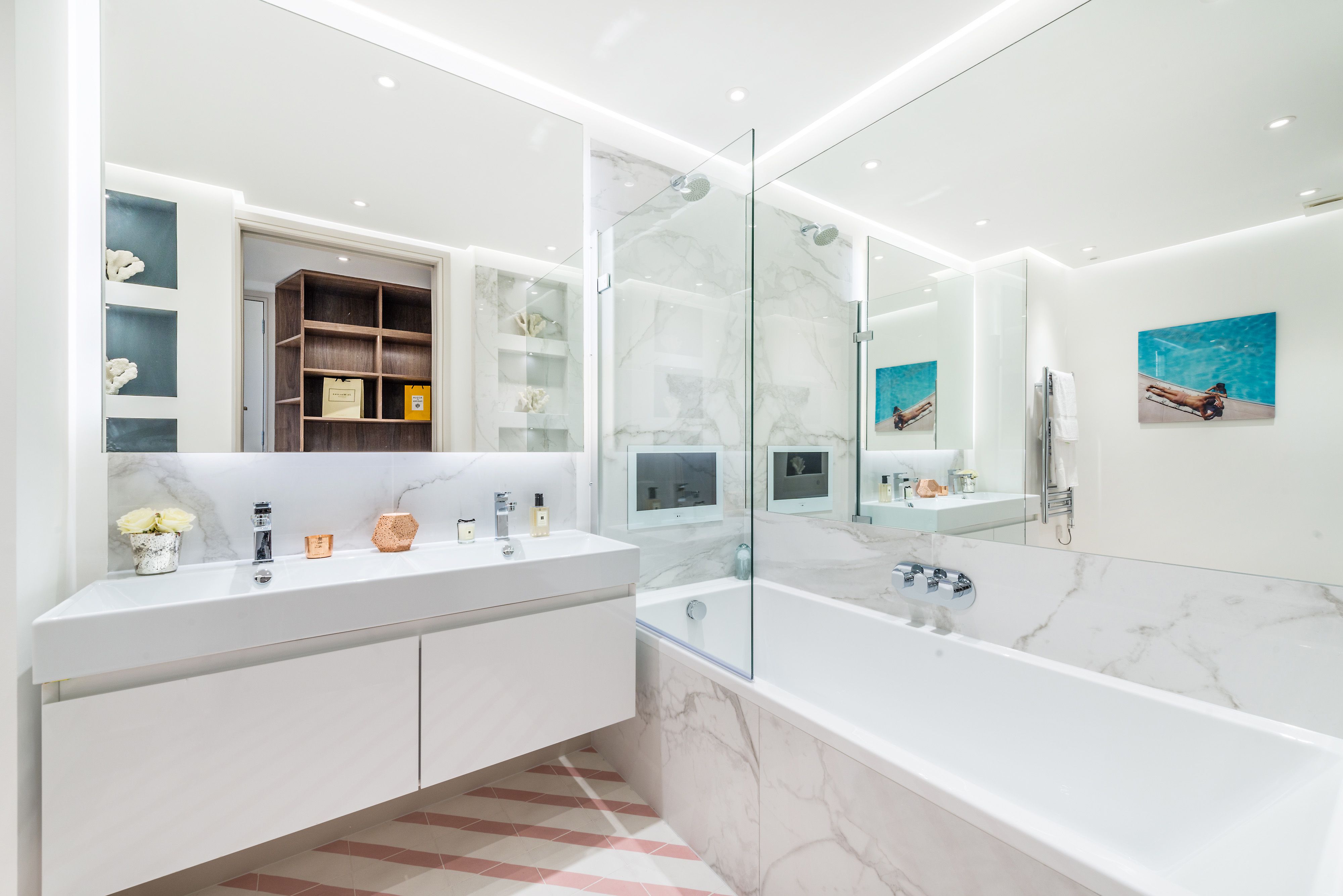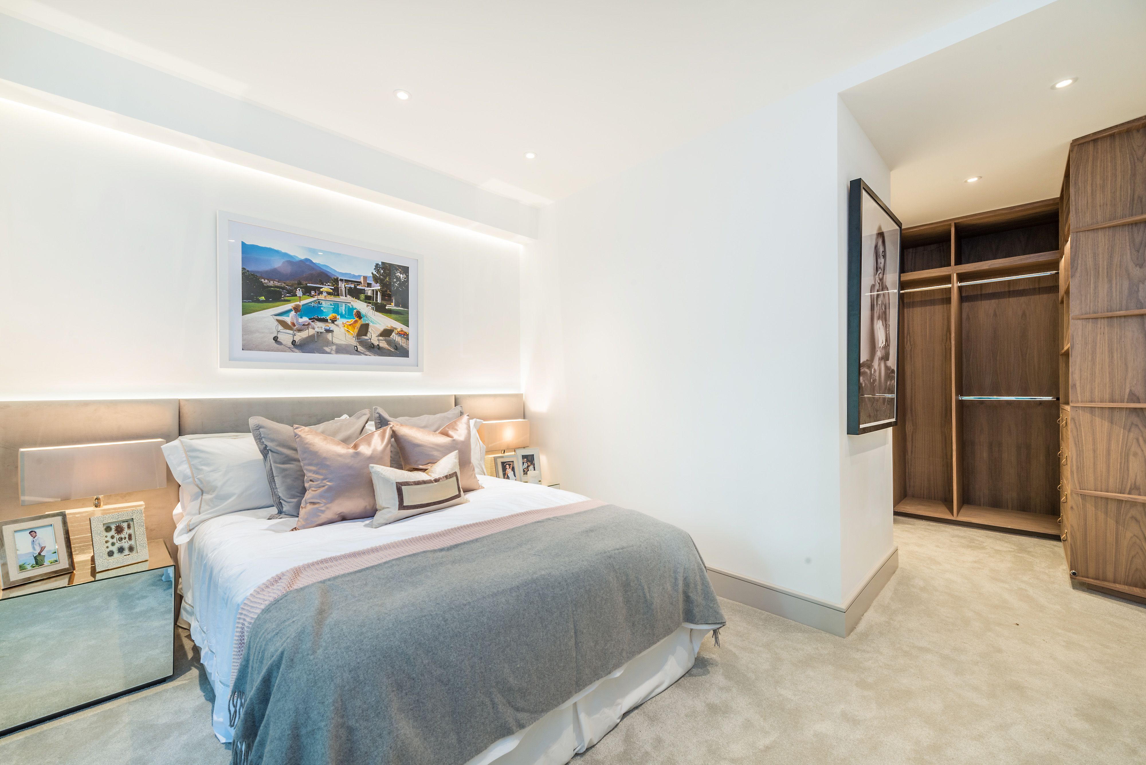 A two bedroom apartment that we created from a one bedroom foot print, the brief included planning for a rear extension and conversion of vaults to additional internal space. Lighting design, interior design and staging.