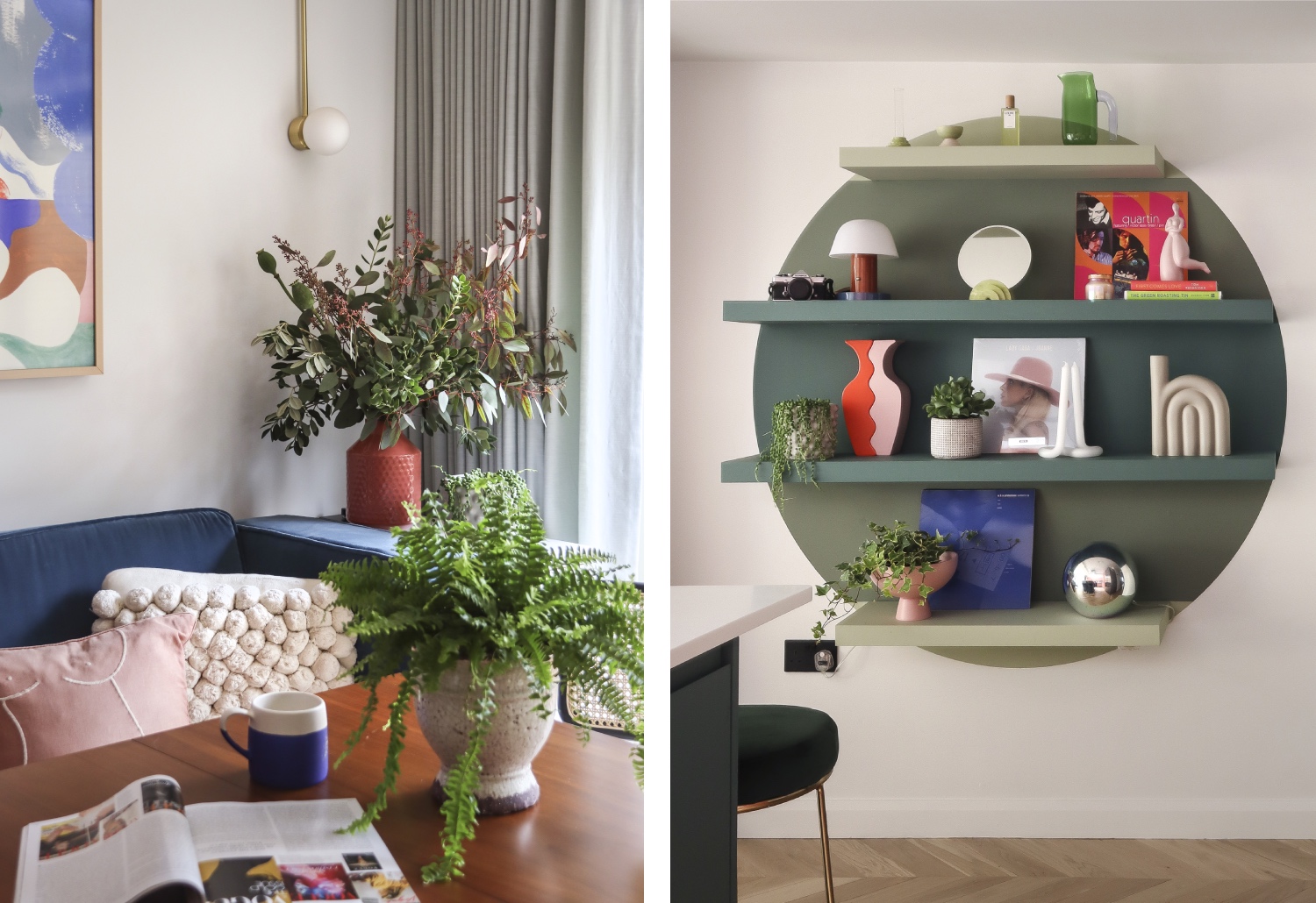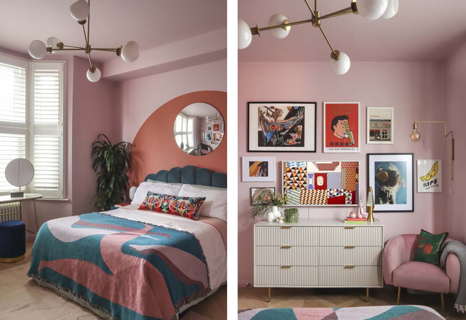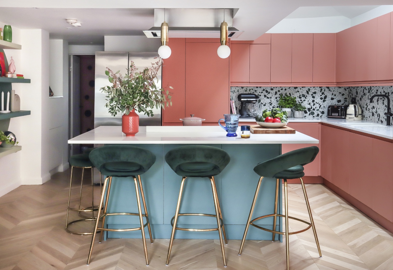 The client had a clear idea of the colour scheme she wanted and produced her own image boards for the designer to interpret. Working with Lick paints, a very personal colour palette of vibrant, earthy and muted pinks with teal and green accents, is used throughout.