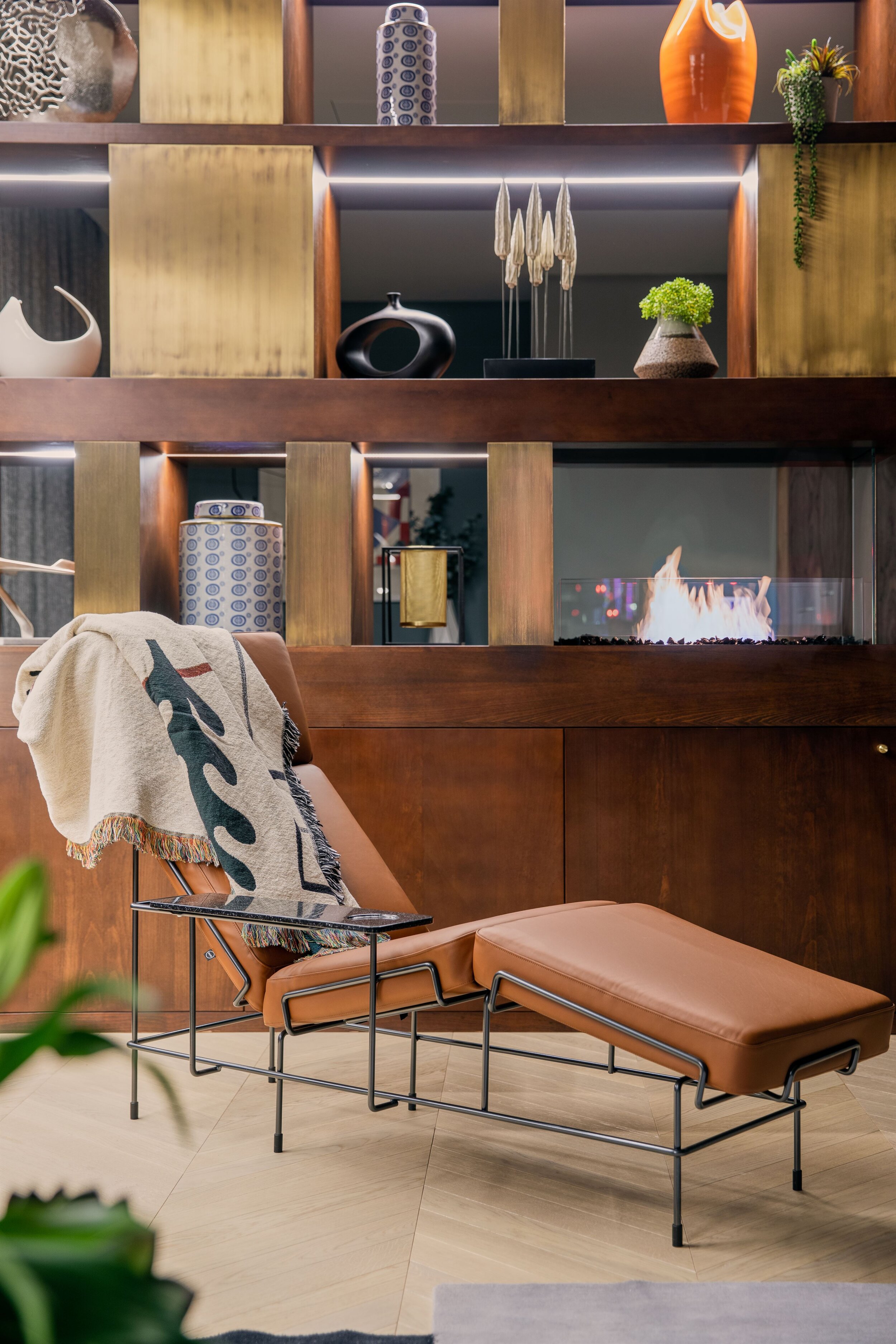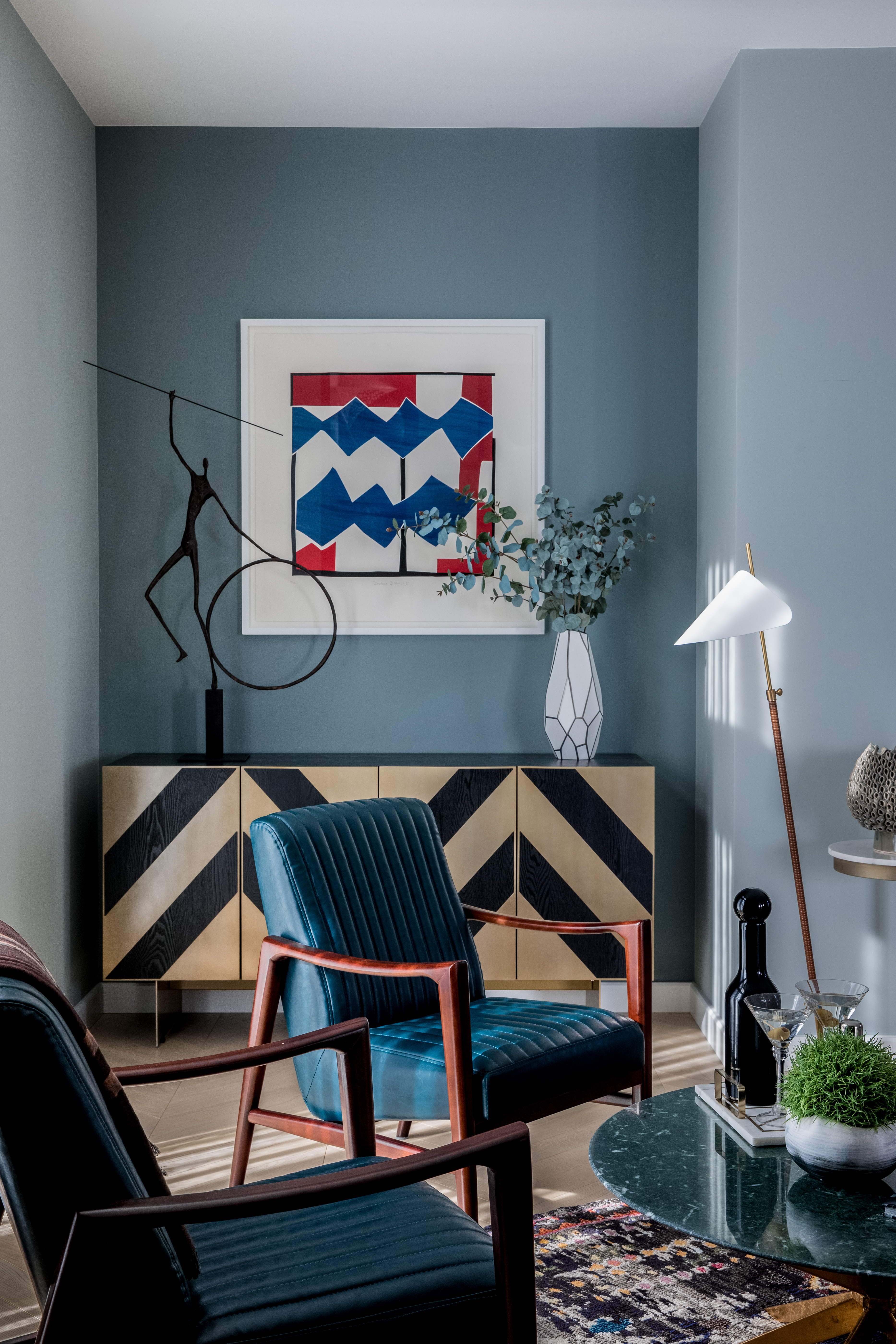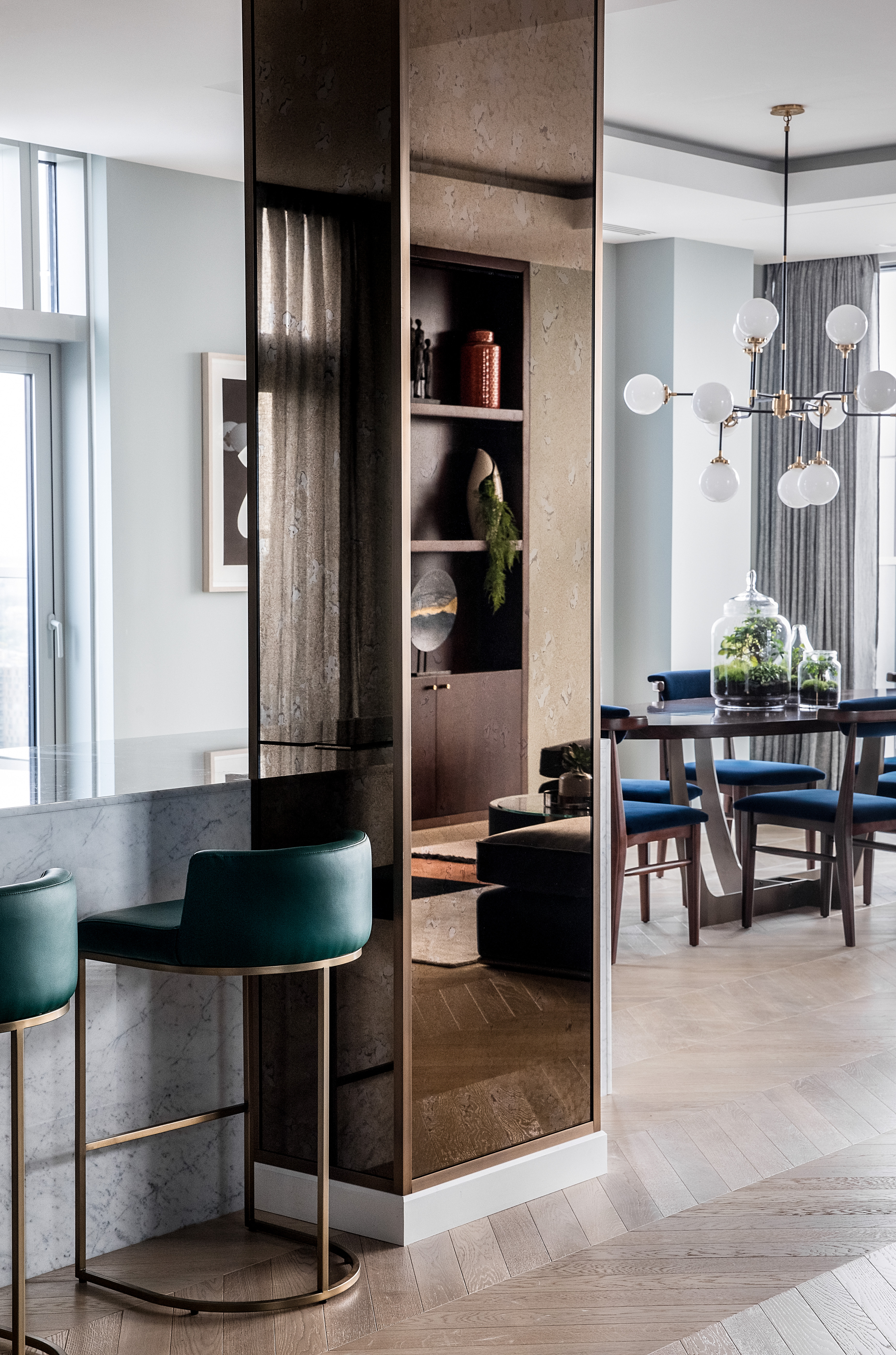 The building's architecture was our inspiration. It looks like a vast silver totem characterised by precise and boldly delineated geometric shapes, a modern masterpiece with echoes of Art Deco, a style we were keen to incorporate into our scheme.