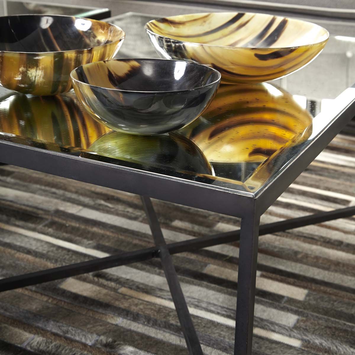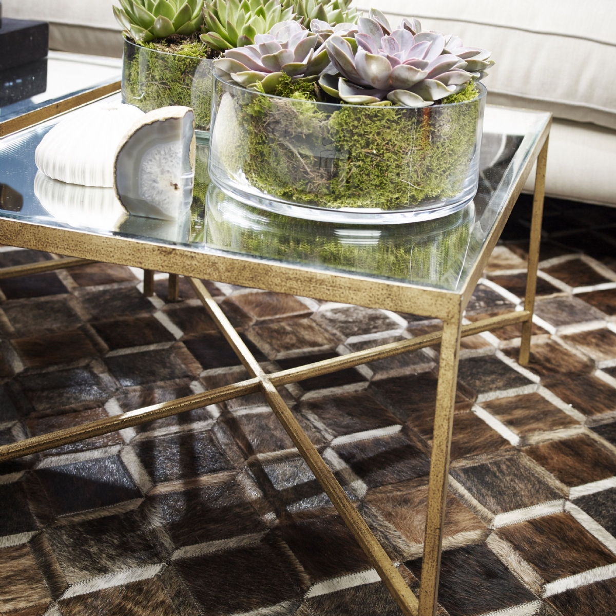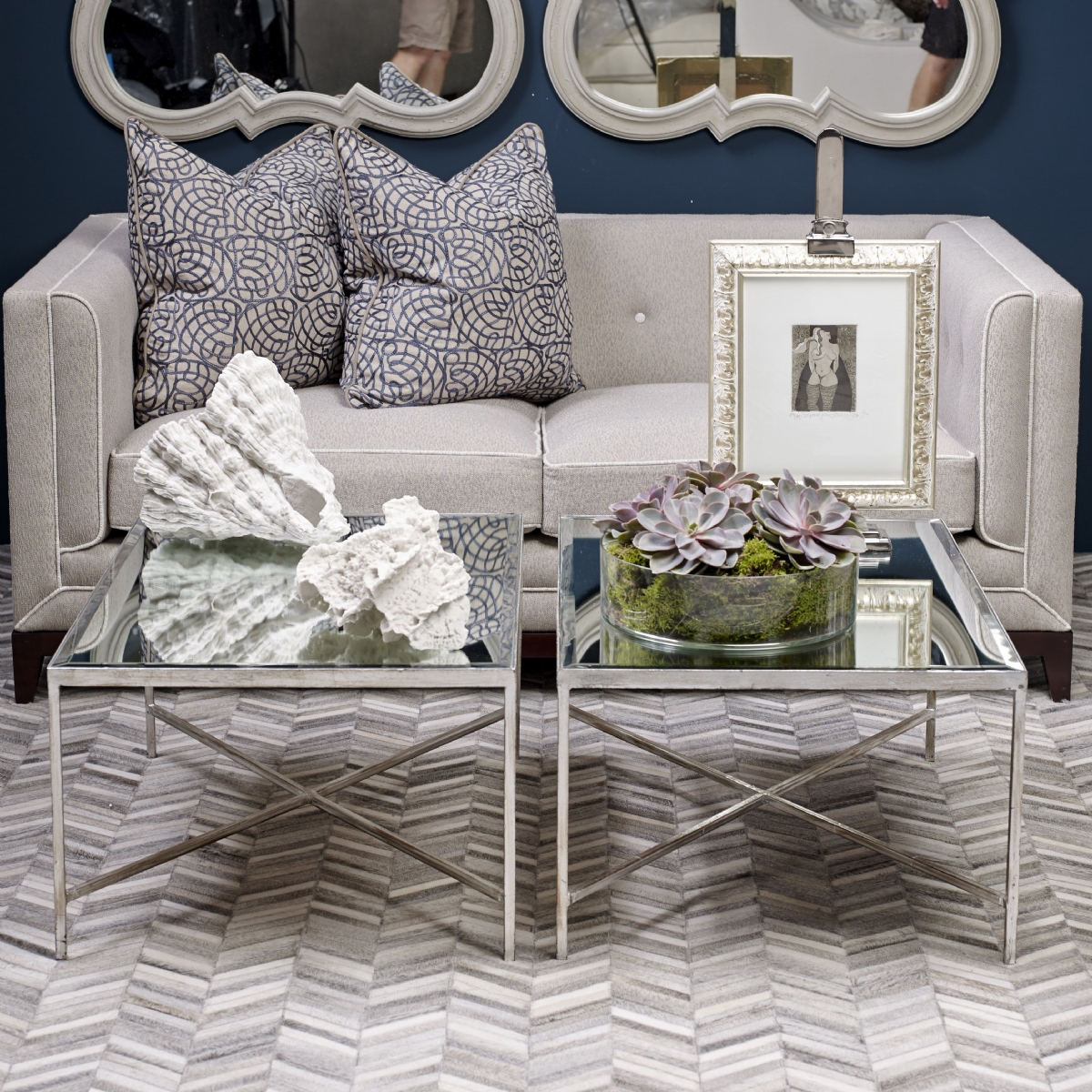This simply designed metal base is hand finished in a distressed silver leaf. The antique mirrored top is fixed to board for added strength and adds a touch of glamour to the piece. Sensibly scaled for urban use, this table looks amazing when used in groups of two or three.