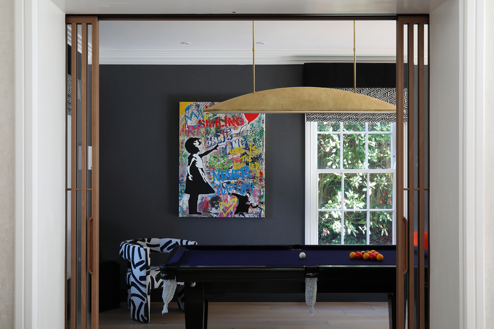 The myriad of tones, materials and finishes applied to the kitchen-diner continue through to the ground floor games room and up to the top floor, when our team installed a cinema room for relaxed evenings and a night club to step things up a notch.