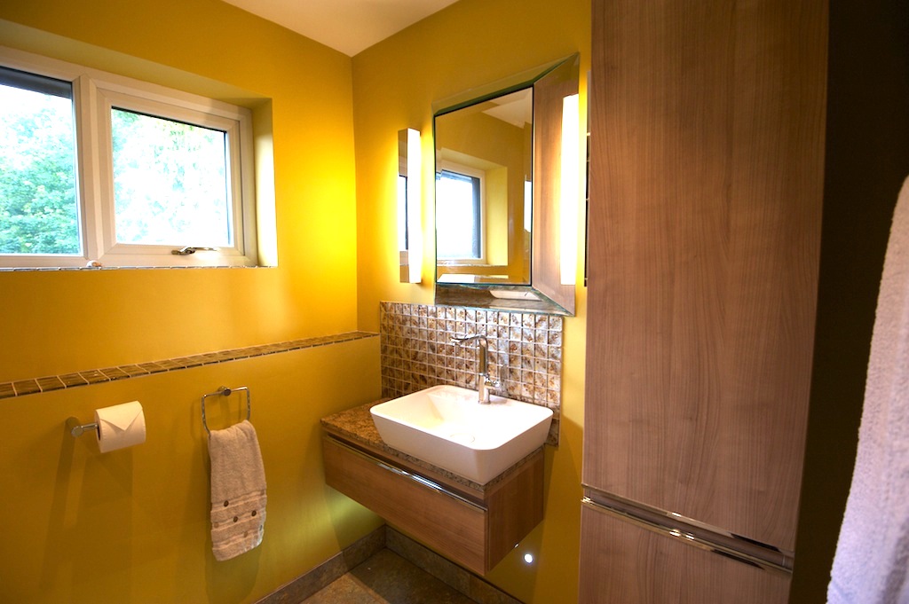 A 4 bedroom Mock Tudor house in Bromley in Kent. The house about 15 years old was recently purchased by my client was in poor decorative order, especially to the bathrooms, an en-suite and family bath plus a cloakroom, all of which had suffered water damage. The brief was to turn the house into a home including a workspace for the client who often works from home.