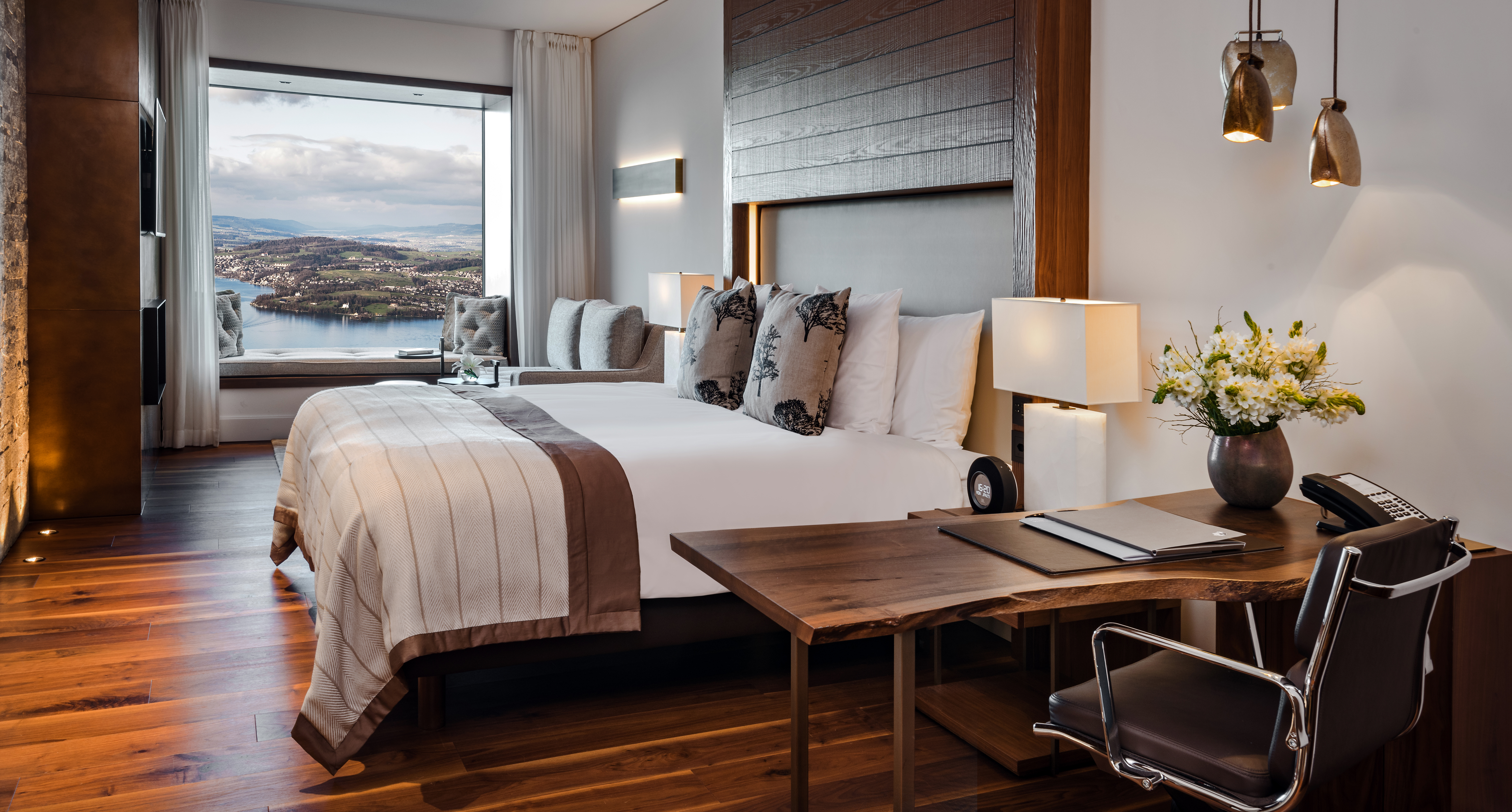 The legendary Bürgenstock Resort has recently re-opened after a complete redevelopment that included the introduction of the new five-star Bürgenstock Hotel. Acting as architectural masterplanners as well as interior designers, MKV responded to the modernist architectural design with imposing, yet deeply comfortable interiors in which the views are the star. To be in Bürgenstock Hotel is to hover over mountains and lake in window seat of your room, the sunken tub in your bathroom and in every major public space. Materials are natural, textural and local, there are cosy seating areas, fireplaces to gather around and a reassuringly earthly colour palette. The dizzying majesty outside is thus counterbalanced by a sense of rootedness inside.