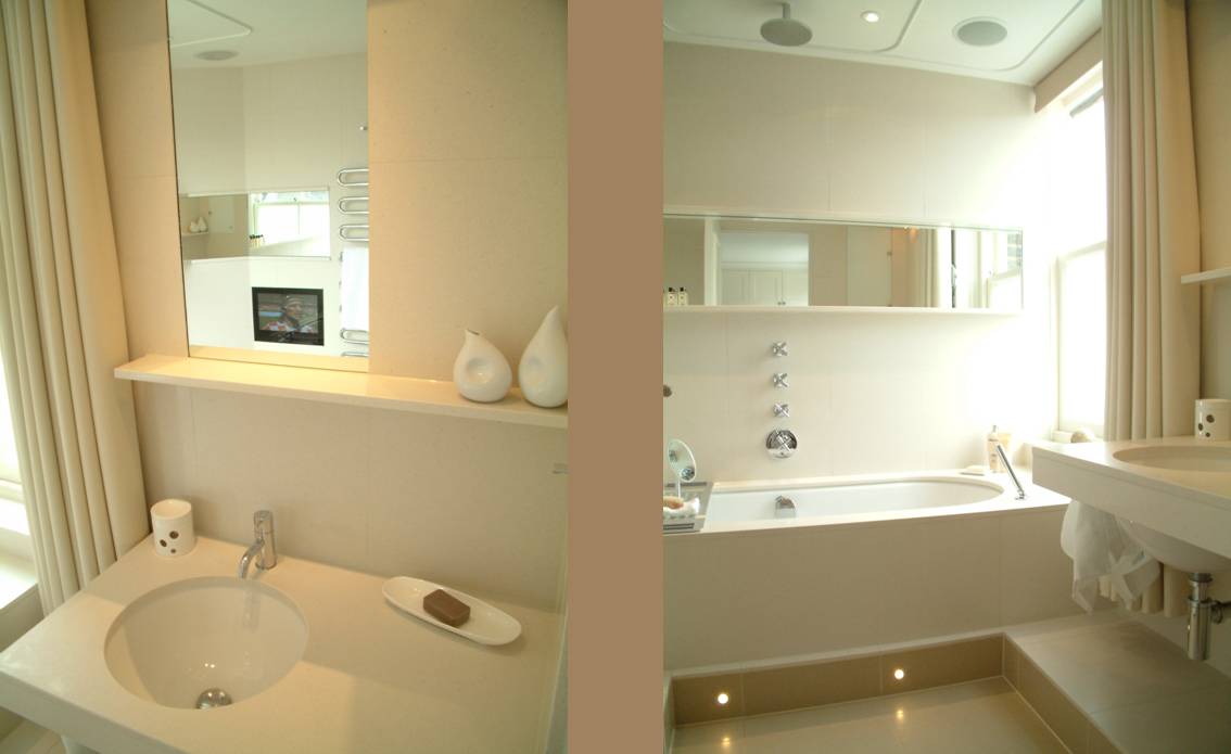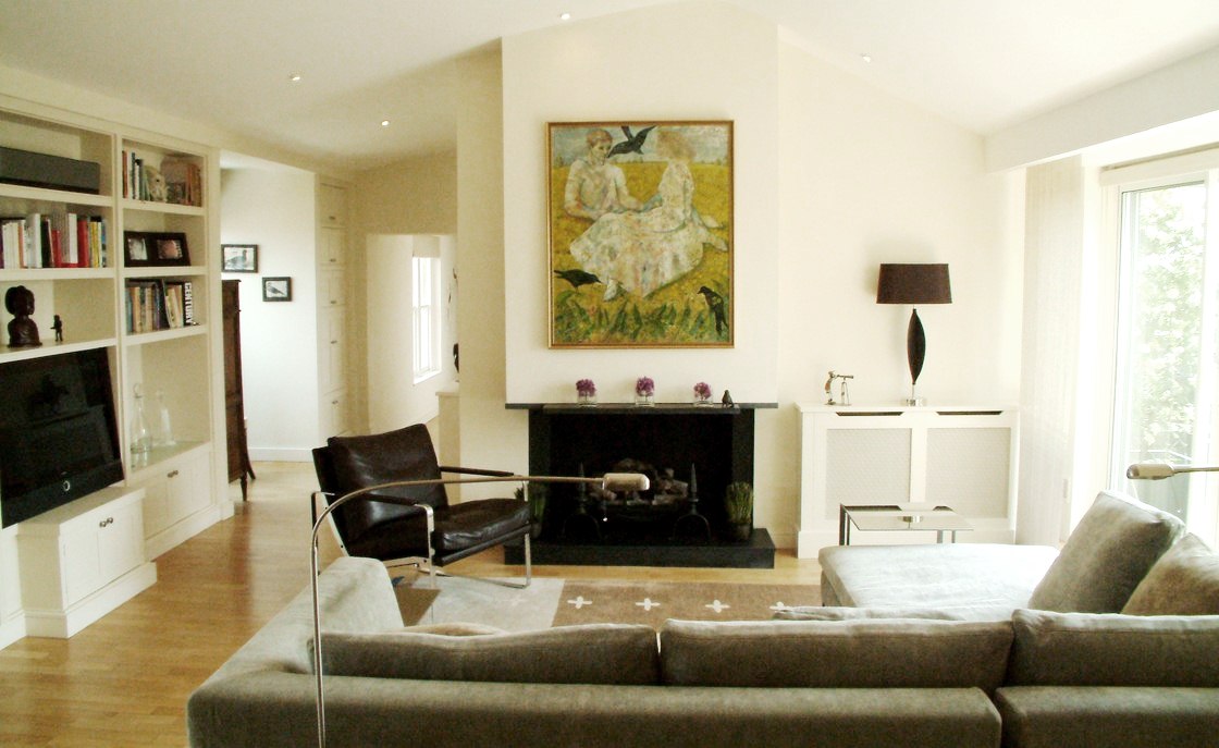 Our clients commissioned us to refurbish their dual-aspect penthouse with a brief to create a stylish, comfortable and relaxing London pied-Ã -terre for meetings and informal entertaining. In addition to dealing with the internal redecorations, we sourced and installed new furnishings, lighting and window treatments to complement their existing collection. The bathrooms required complete remodelling in terms of layout and design with every spare inch being maximised, resulting in luxurious and highly functional spaces. A bespoke kitchen was designed to accommodate a large American fridge/freezer and the window area enlarged with a breakfast bar beneath to make the most of the fabulous London skyline.