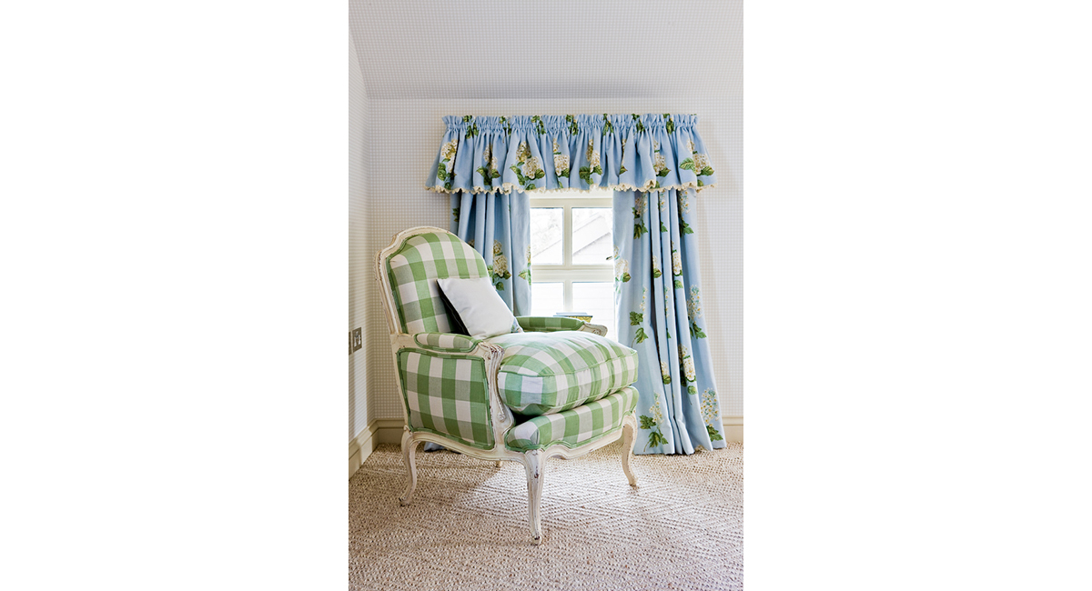 The design process was very much a joint effort with the client, who had her own exquisite style. Horton undertook the implementation of the interior schemes and soft furnishings throughout the property. This included bathroom design, joinery and lighting plans.