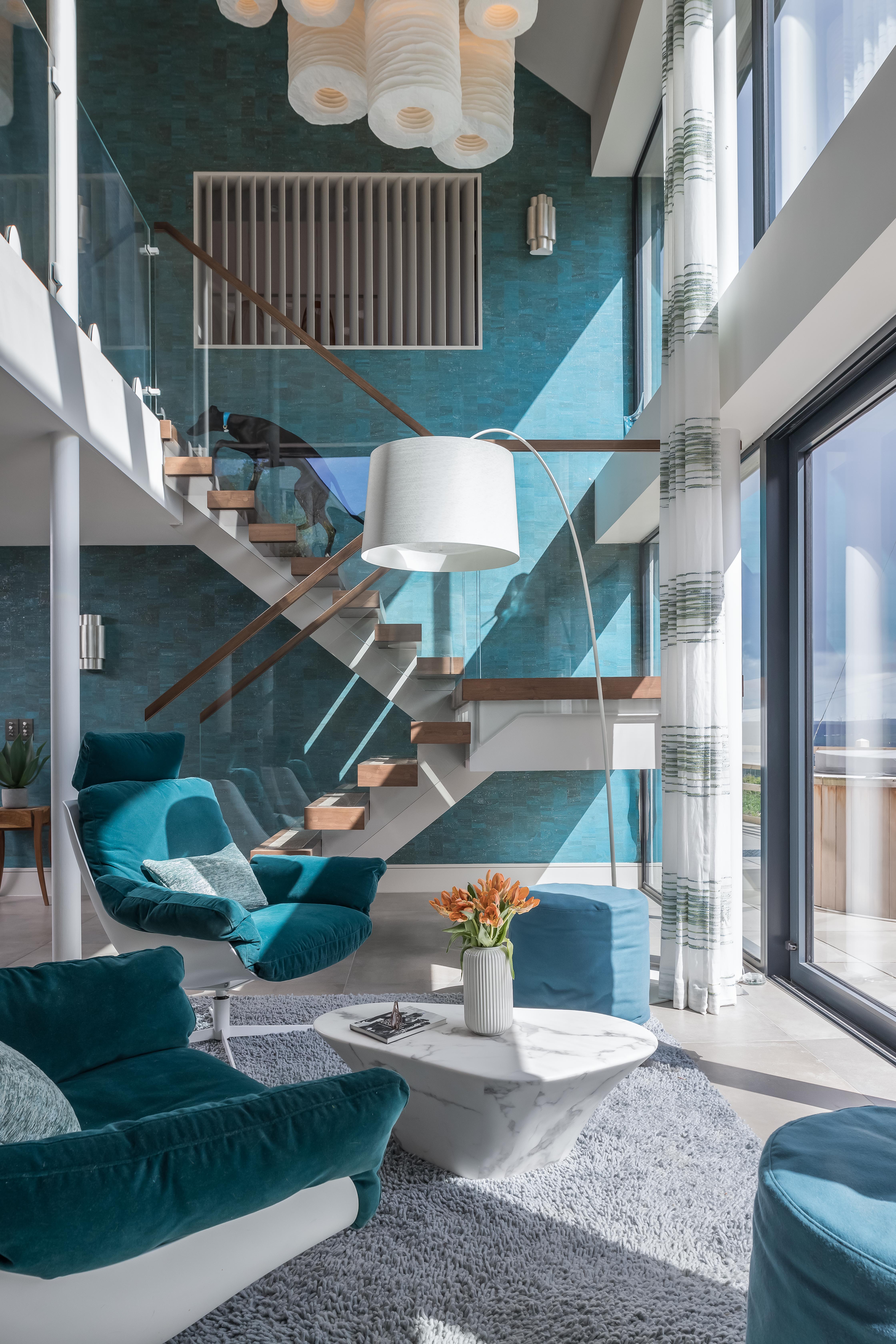 We were appointed to help furnish this contemporary new build. With the shell of the building in place, there was scope for an entire rethink on architectural elements, ligthing design, staircase, bathrooms, kitchen, joinery and more. These were all decisions to consider before any furniture or furnishings! We worked alongside our clients to bring about an interior transformation that would provide a colourful, practcal and pet friendly interior.