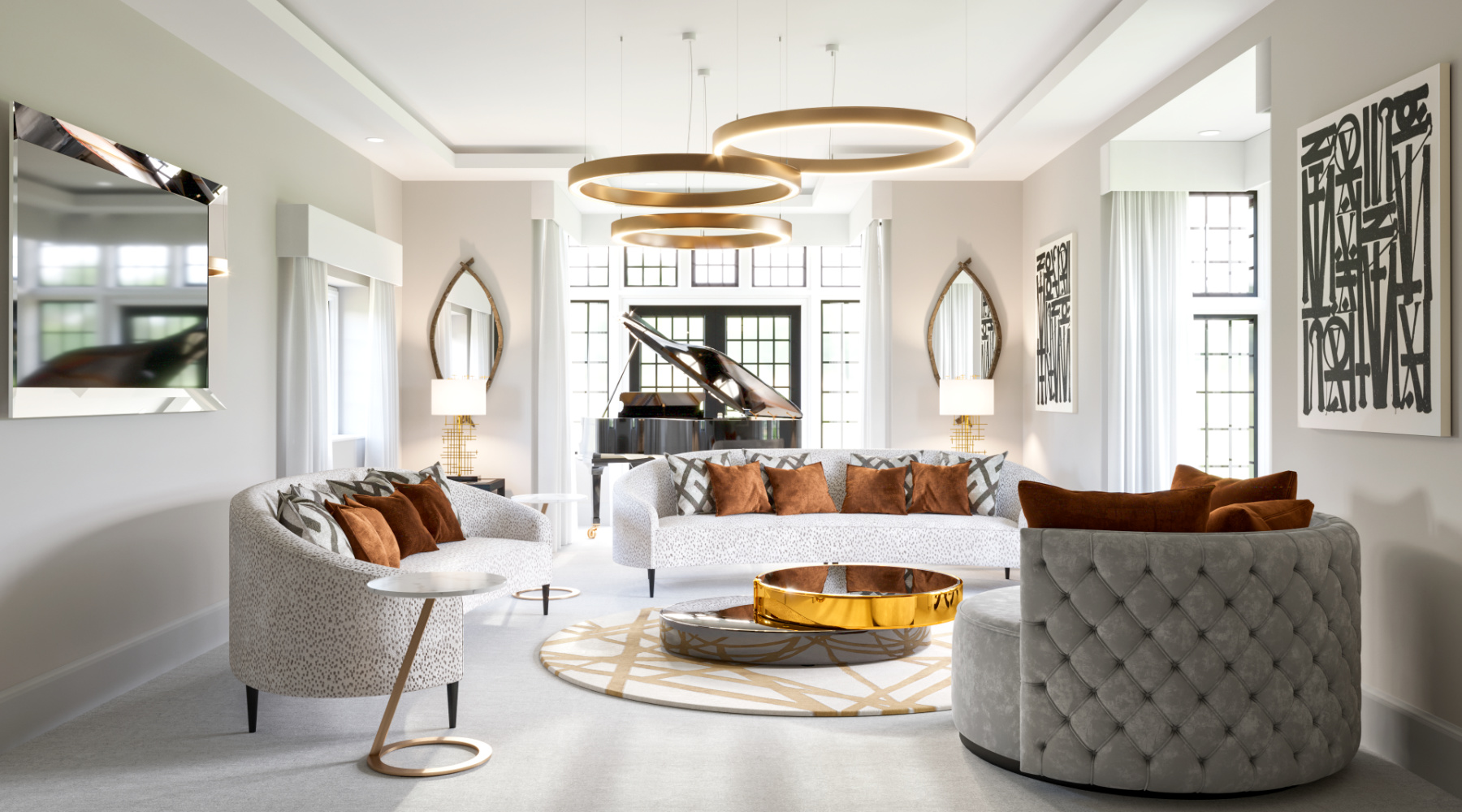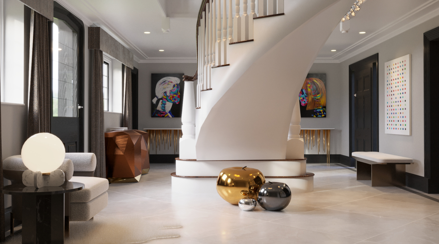 The studio was tasked with the interior design and decoration of the key areas of this large country estate nestled on the border of Warwickshire & The Cotswolds.