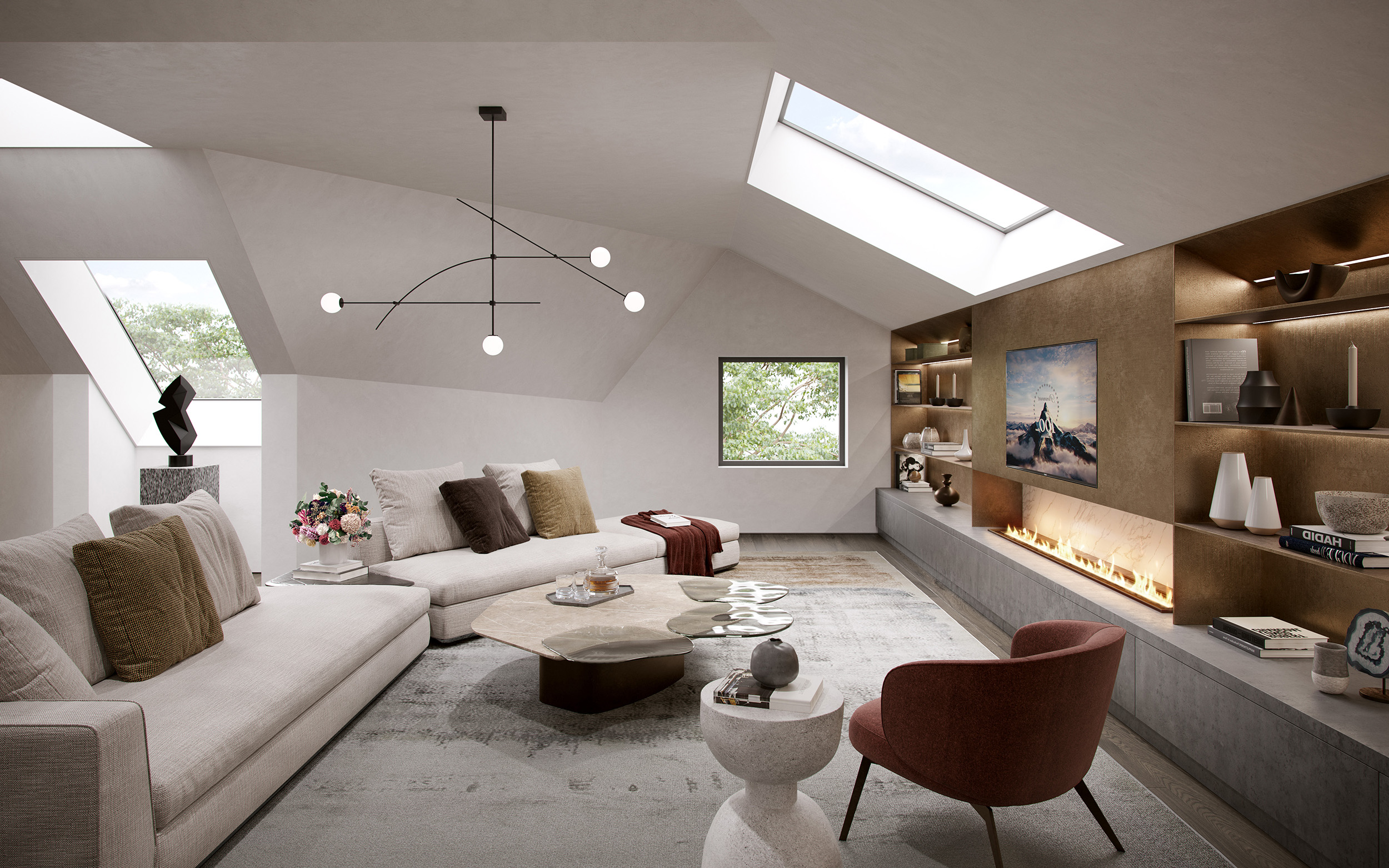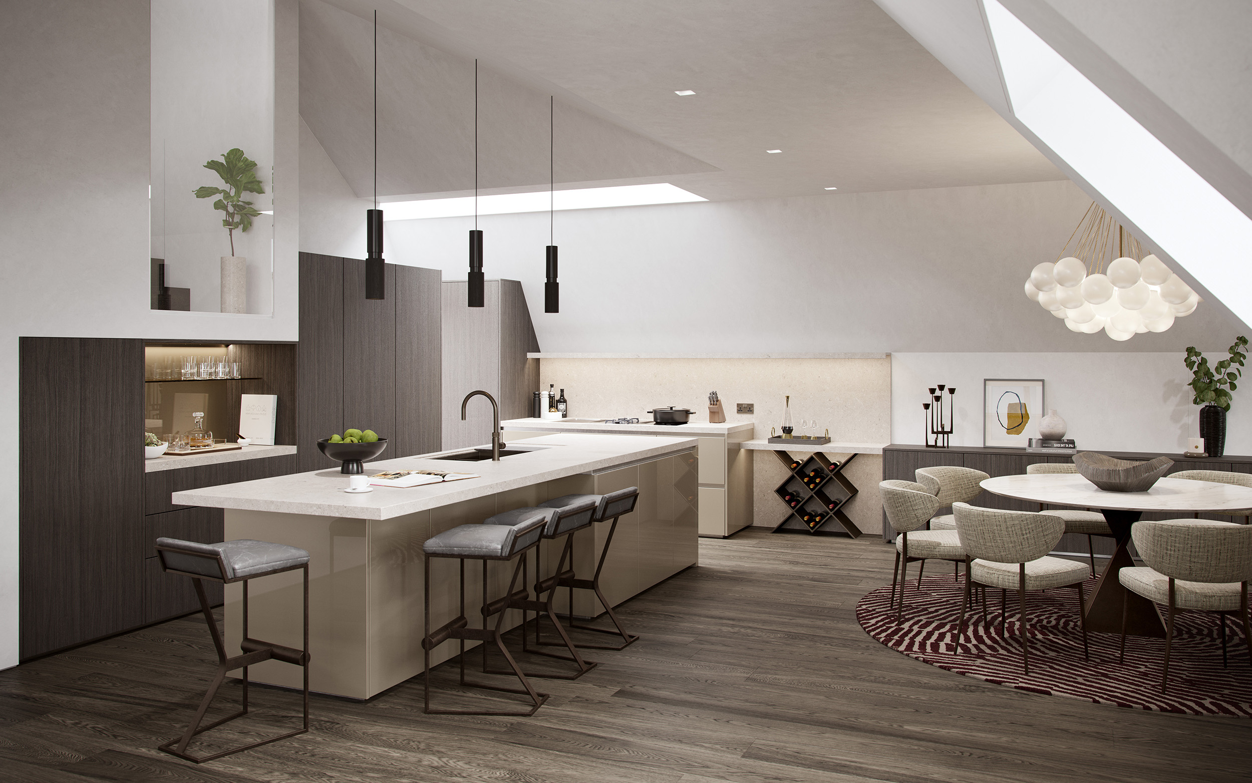 A modern and minimalist design for a penthouse apartment in Central London using natural tones and textures to build warmth.