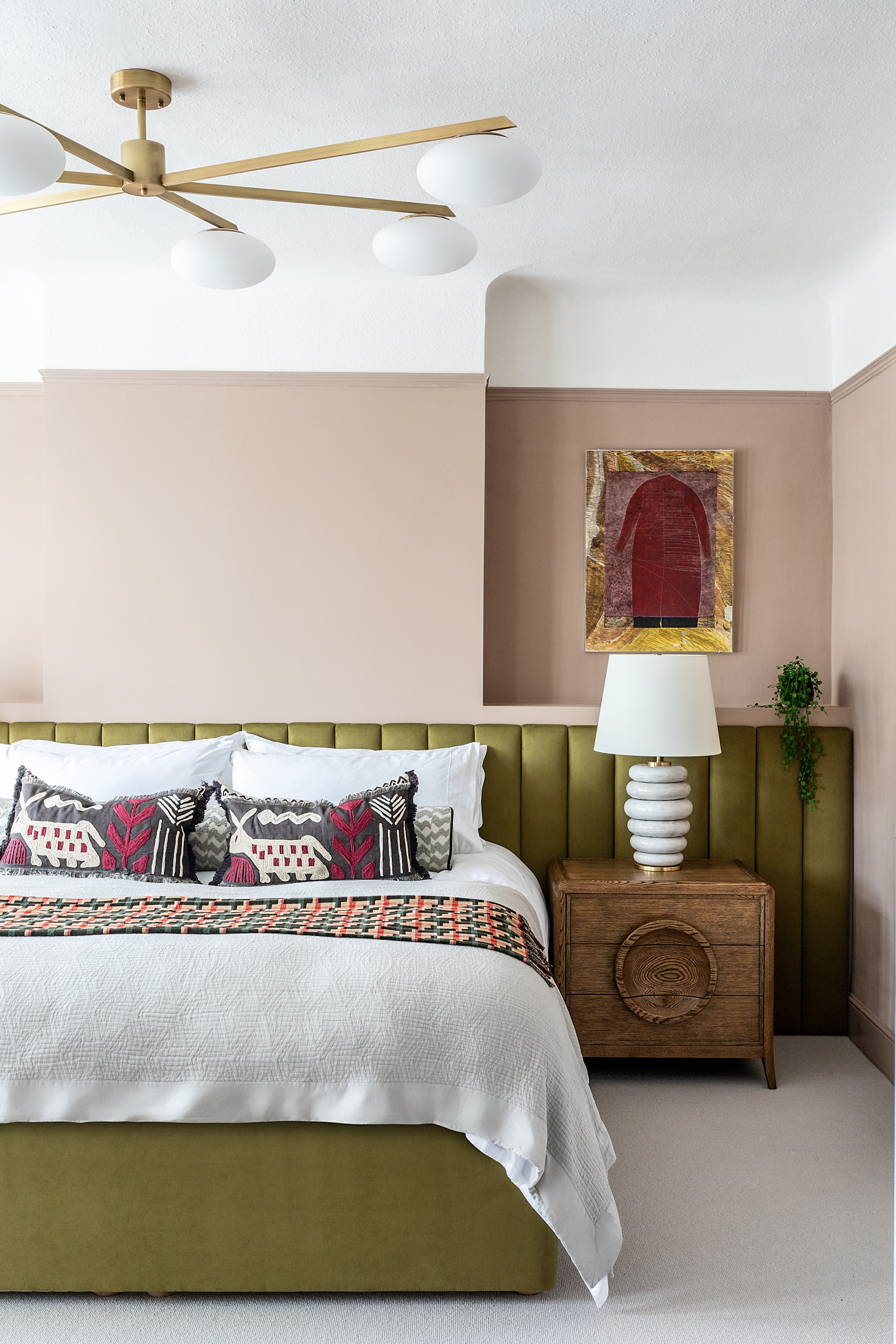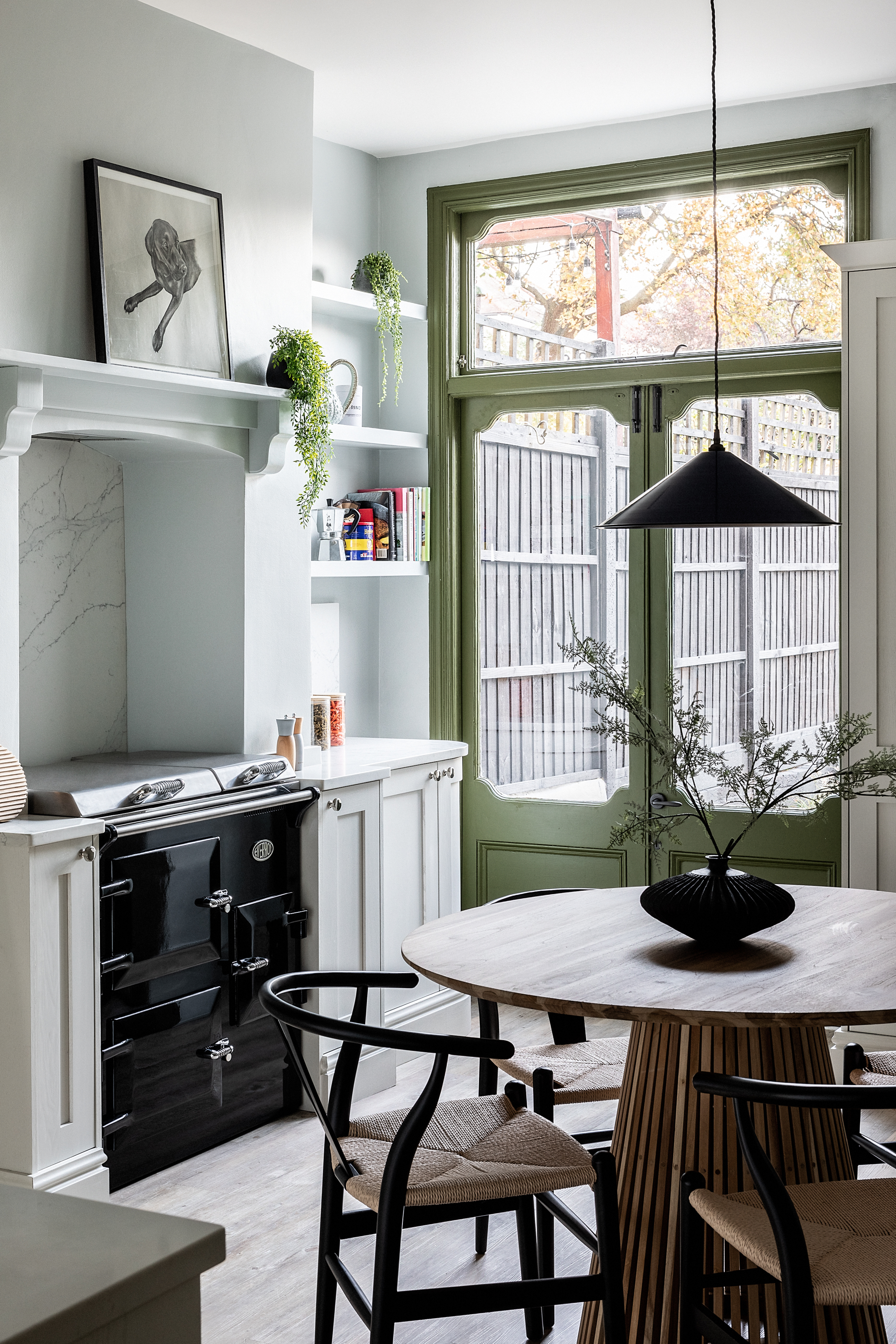 This project was about enhancing what this home already had to offer. Fireplaces were refurbished with new tiles and hearths. Rooms were reinvigorated with a varied palette of aged pink, pale toffee, and ruddy red. Bathrooms were reconfigured with bespoke vanities and walk-in showers. The kitchen was reimagined with new units and a restored Everhot stove. And every room was treated to a mix of new, vintage, upcycled, and custom-made furniture and window treatments.
