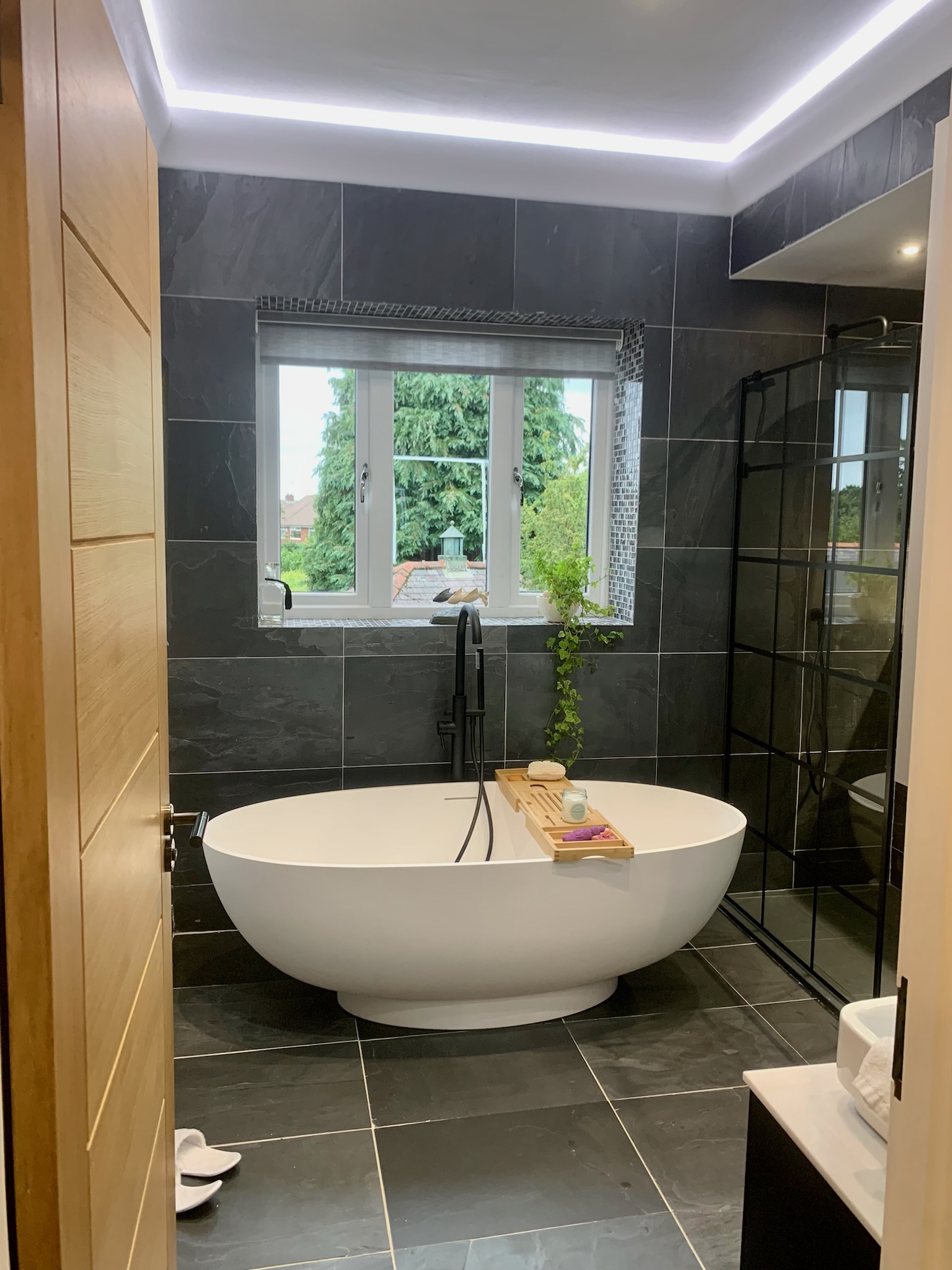 Conversion of existing guest bedroom into spa bathroom and walk-in closet.