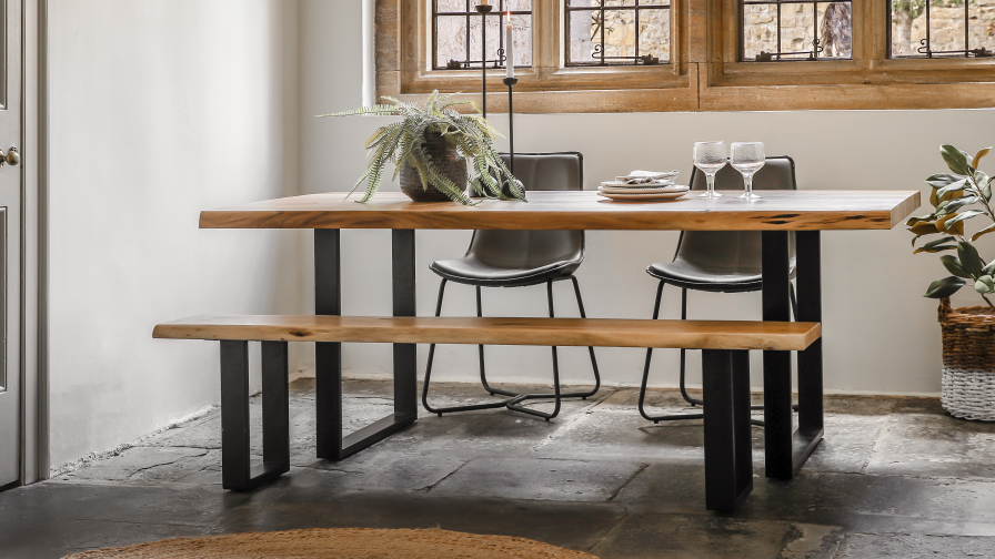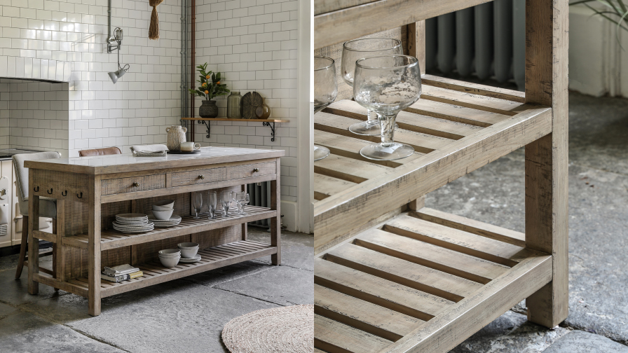 Combines rustic charm with contemporary elements. Features shiplap walls, neutral colours, and vintage accents, creating a warm, inviting atmosphere.
