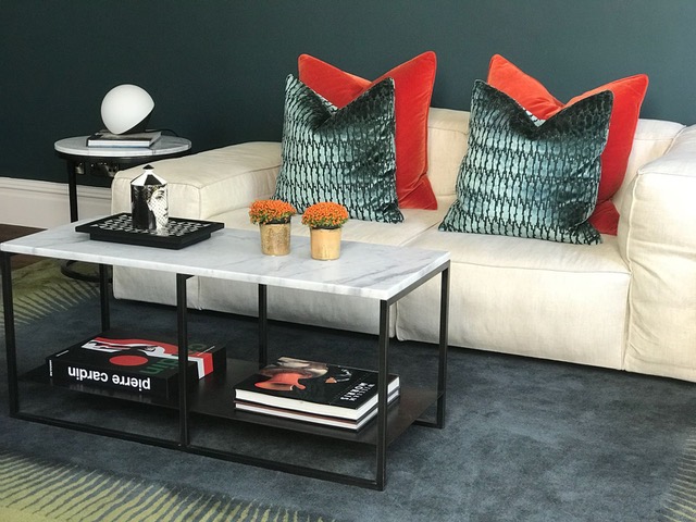 I used a bold colour palette and included a fusion of vintage and modern furniture, coupled with bespoke and high end lighting.