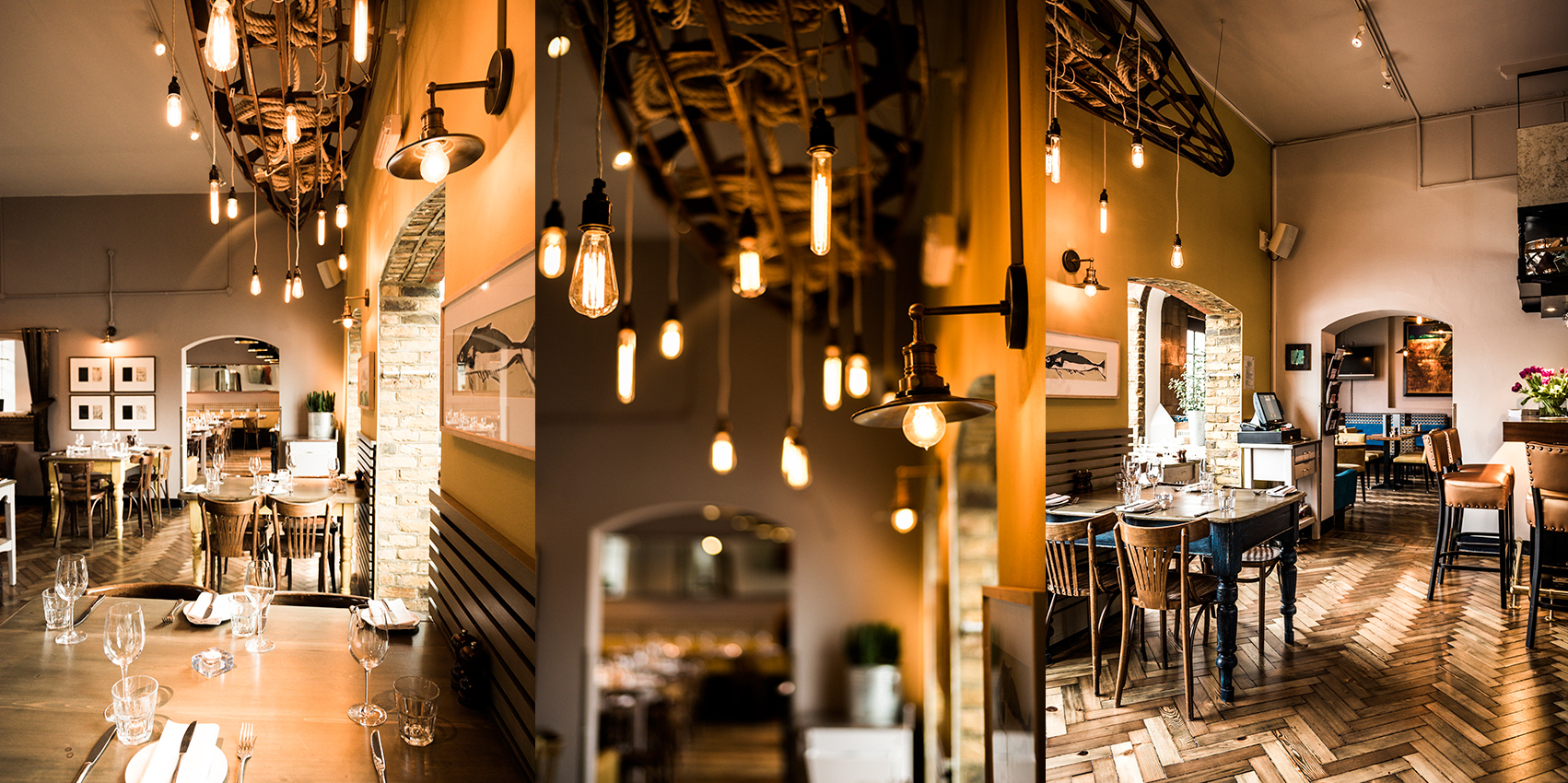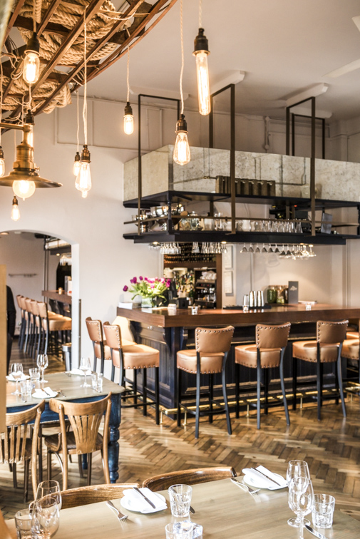 The space is divided into 4 zones. The bar to the left, main brasserie centrally, the restaurant / function room to the right and a conservatory that runs along the entire width of the restaurant rooms.
