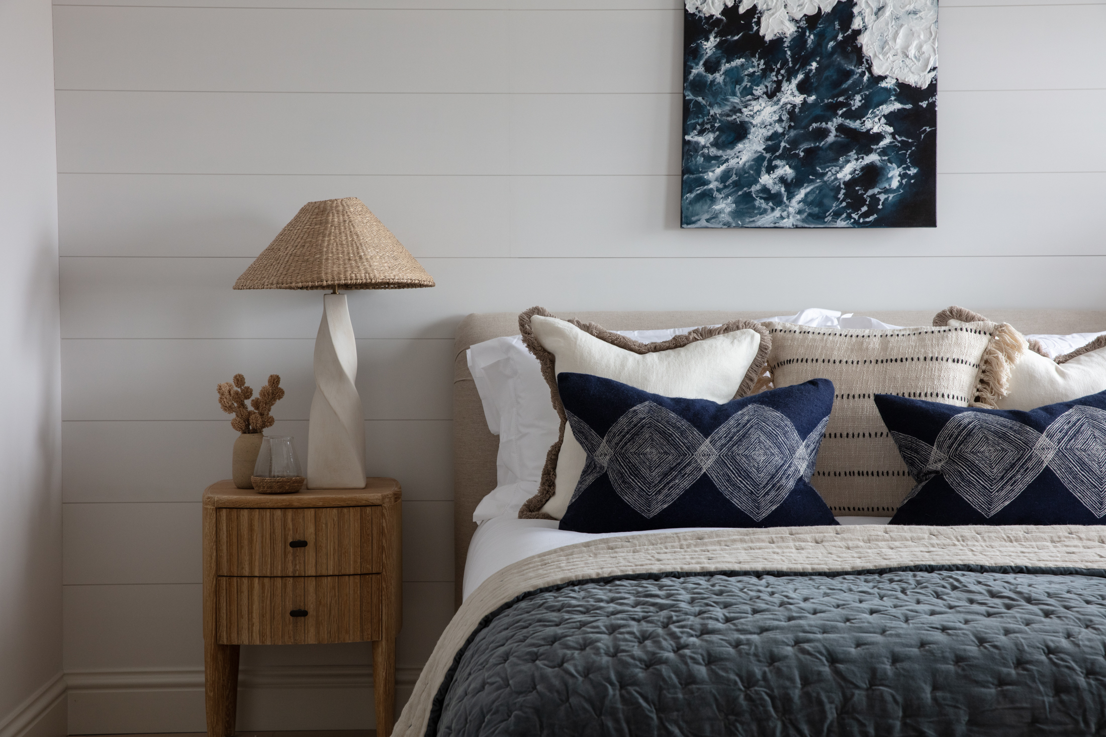 Occupying a prime front-row position in Rock, Doom Bar View is just a one-minute walk from the beach and boasts breathtaking views over the Camel Estuary. This three-story renovation was a complete transformation, involving new flooring, reconfigurations, and a full refurnishing. Joining the project from the outset allowed us to refine the existing plans, ensuring the interiors aligned seamlessly with the client’s vision.As a second family home, it was essential that Doom Bar View functioned effortlessly for family life—practical yet undeniably beautiful. The design was crafted with longevity in mind, embracing a timeless aesthetic. A coastal-inspired palette was accented with pops of colour and layers of texture, striking a perfect balance between space, light, and subtle nautical elements. Natural flooring throughout created a sense of calm, while plush velvet fabrics added depth and warmth.A key feature of the home was the dining area on the balcony—a must-have for enjoying the spectacular estuary views.