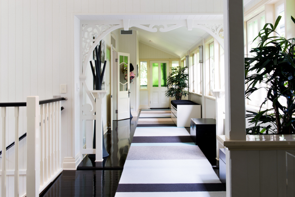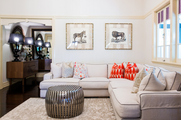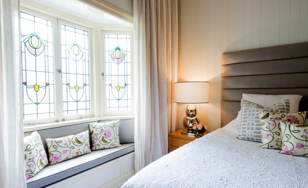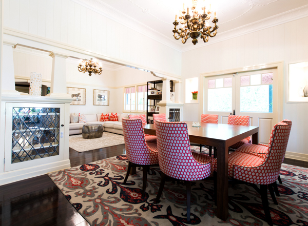 This stunning home features bright striking patterns which contrast against the dark brown hard wood floors bringing a perfect balance of contemporary style while complementing the original structure. Paying respects to the original features of the home, many classic elements have been retained in the new design such as the stained glass windows, which flow throughout the home, the VJ panelling, the vintage ceiling mouldings and the gold detailed chandeliers.