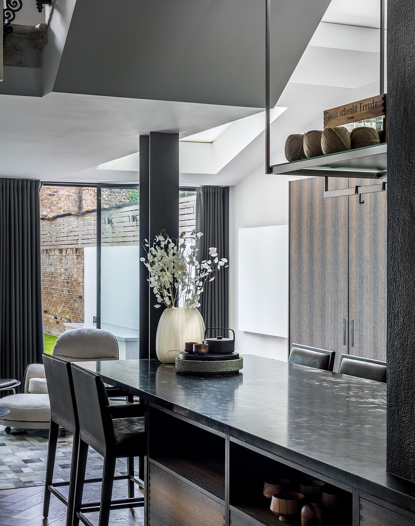 The transformation combines elegantly understated, neutral interiors and minimal detailing to create warm and intimate spaces to suit the family’s lifestyle. The interior palette was made up of elegant dark hues and embraces raw textures and natural materials of stone, timber and marble with luxurious touches of bronze and alabaster. Real attention to detail and a focus on craftsmanship allowed the quality of the materials to shine through.