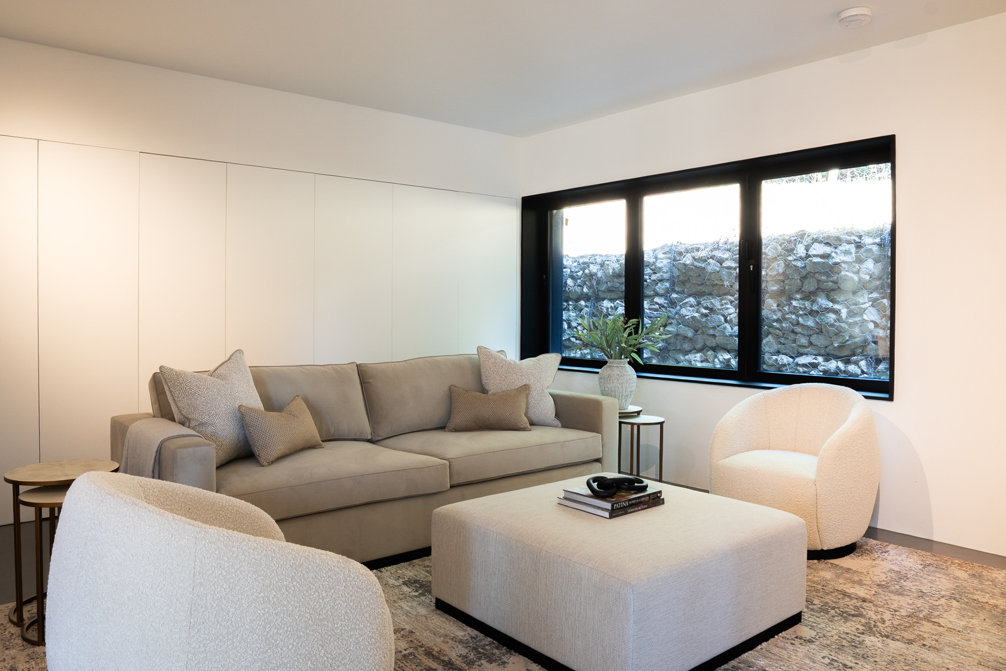 The brief was to craft a refined yet relaxed atmosphere using natural materials, soft neutral tones and tailored detailing. Every element — from spatial planning and bespoke joinery to furniture specification and lighting design — was carefully considered to achieve a cohesive flow throughout the home.