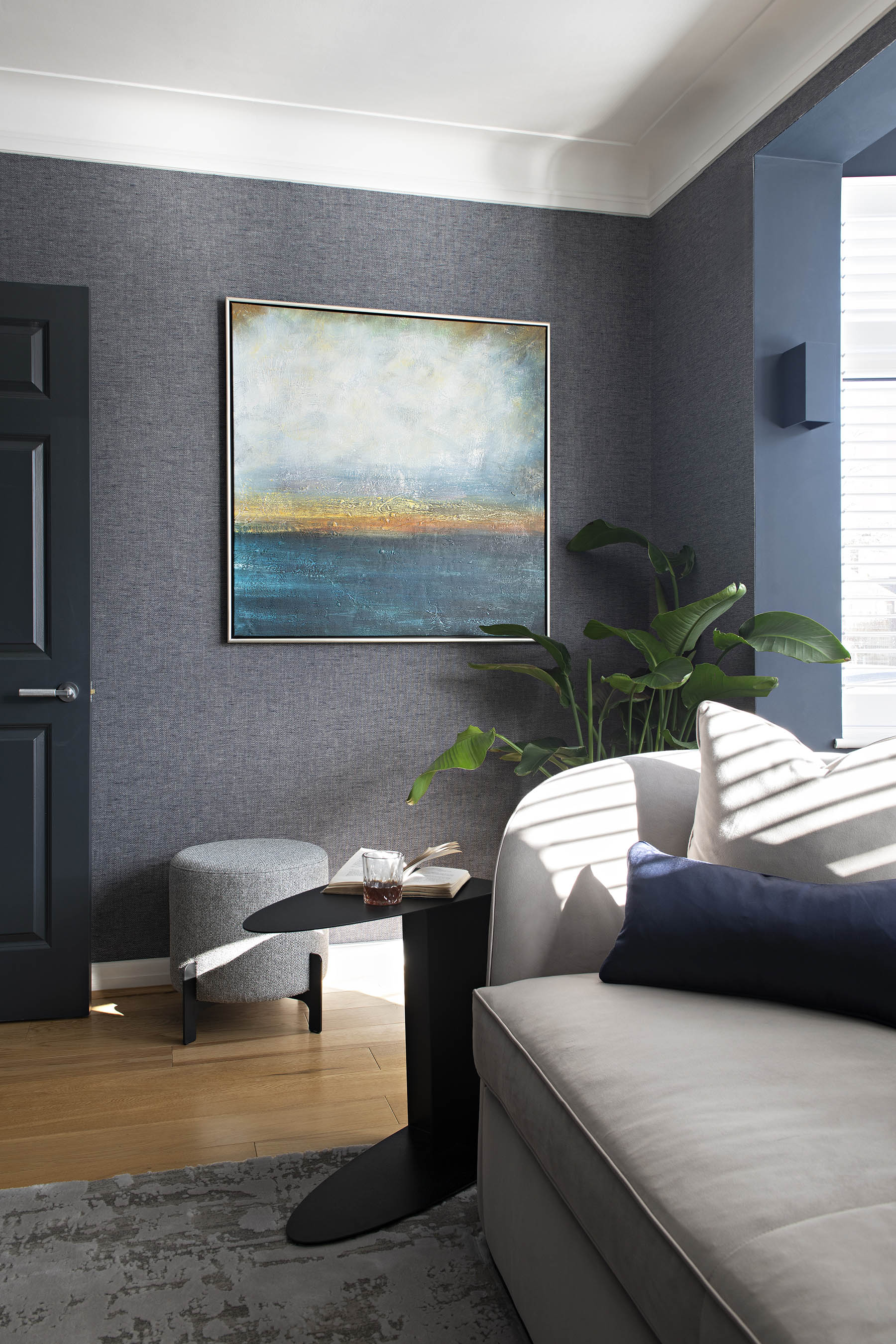 The brief from this client was to create an industrial and contemporary look as part of a full house renovation. To achieve this, we chose dark and deep tones, which we then contrasted against a range of different textures to give each room its own personality. The open plan kitchen and living space needed to fulfil multiple purposes, and at the same time blend seamlessly as you move from one space to another.
