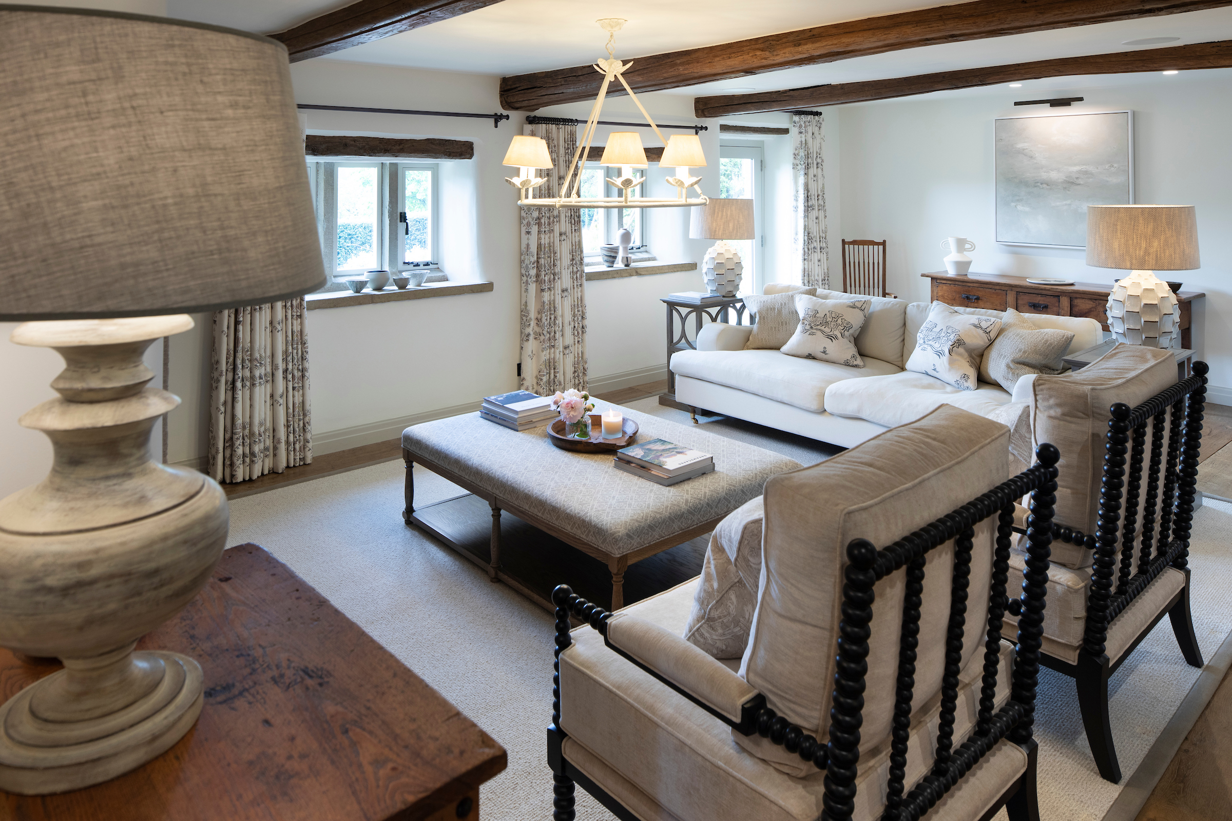 A Grade II listed farmhouse steeped in history, overlooking a beautiful valley in the Cheshire countryside. We worked hand in hand with the client to lovingly restore their forever home. Extreme care was taken in retaining the original period features which were also reflected in the schemes.