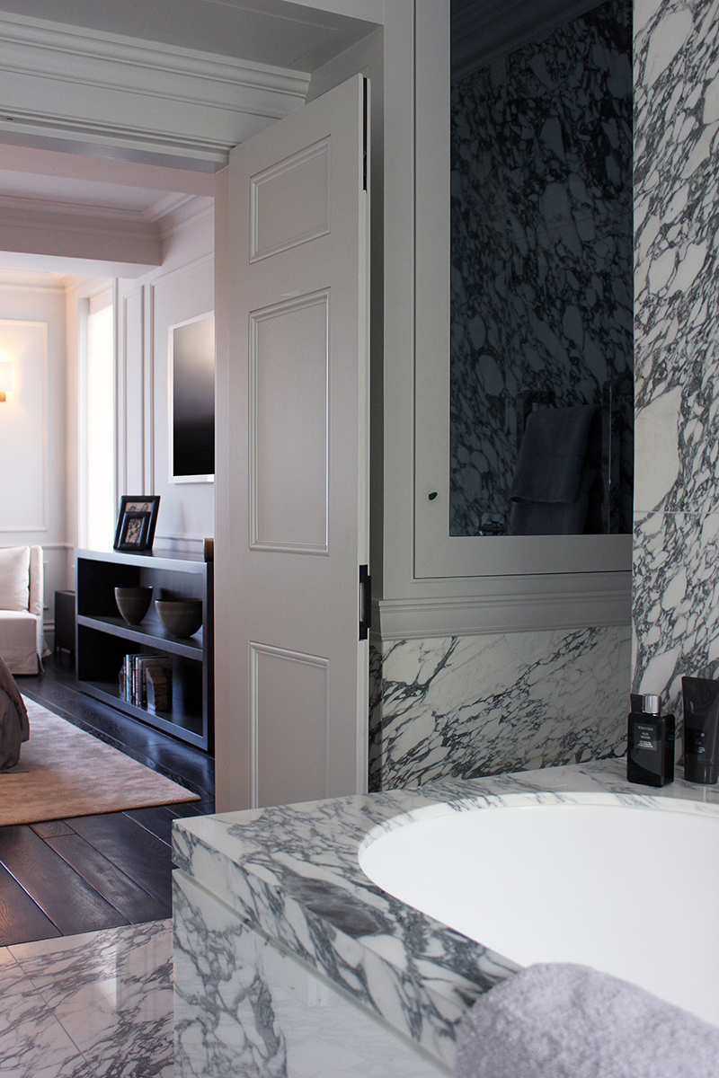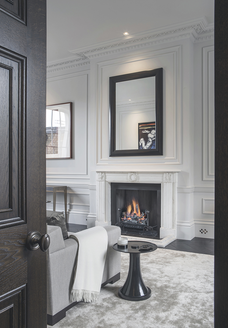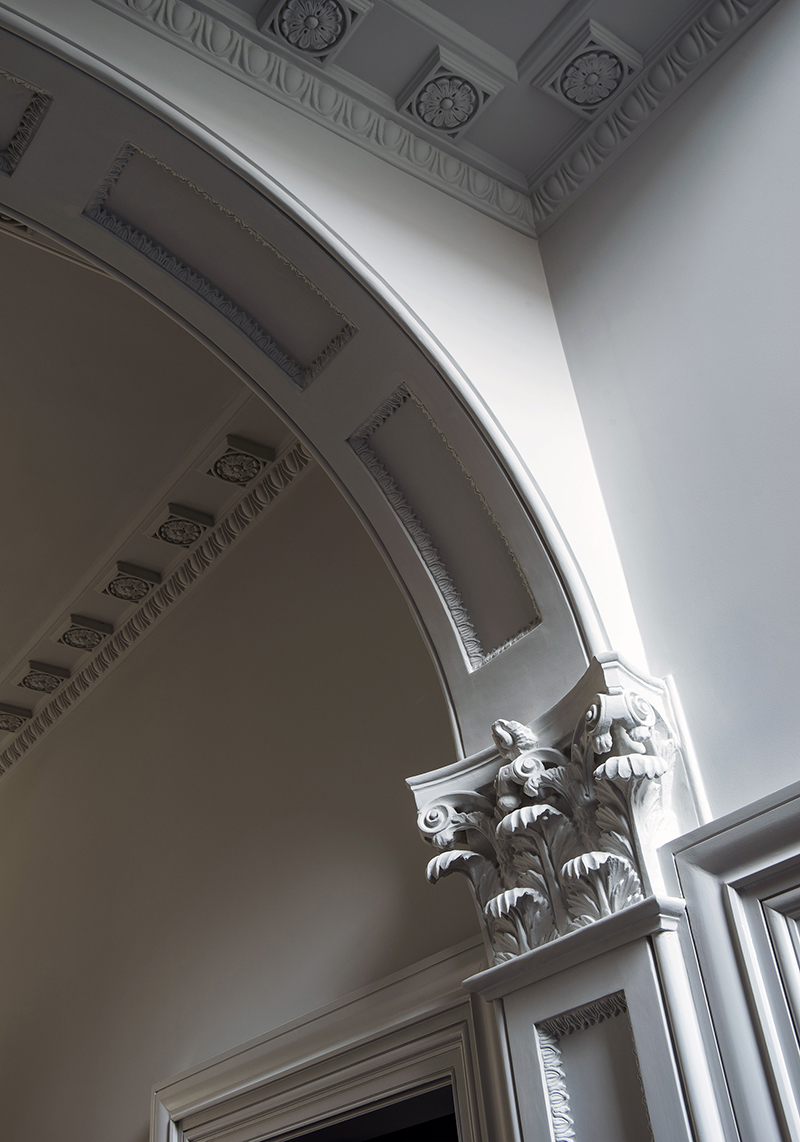 The refurbishment of this Grade II listed house in the St John’s Wood Conservation Area required the sensitive renovation and reinstatement of all historical architectural interior detailing whilst updating the house for contemporary living requirements. This included the installation of air conditioning, whole-house ventilation systems and modern kitchens and bathrooms. It was agreed that the gym and media room should not be incorporated within the historic fabric of the existing house. Therefore, a 1000 square foot subterranean excavation under the rear garden has been completed to incorporate these functions.