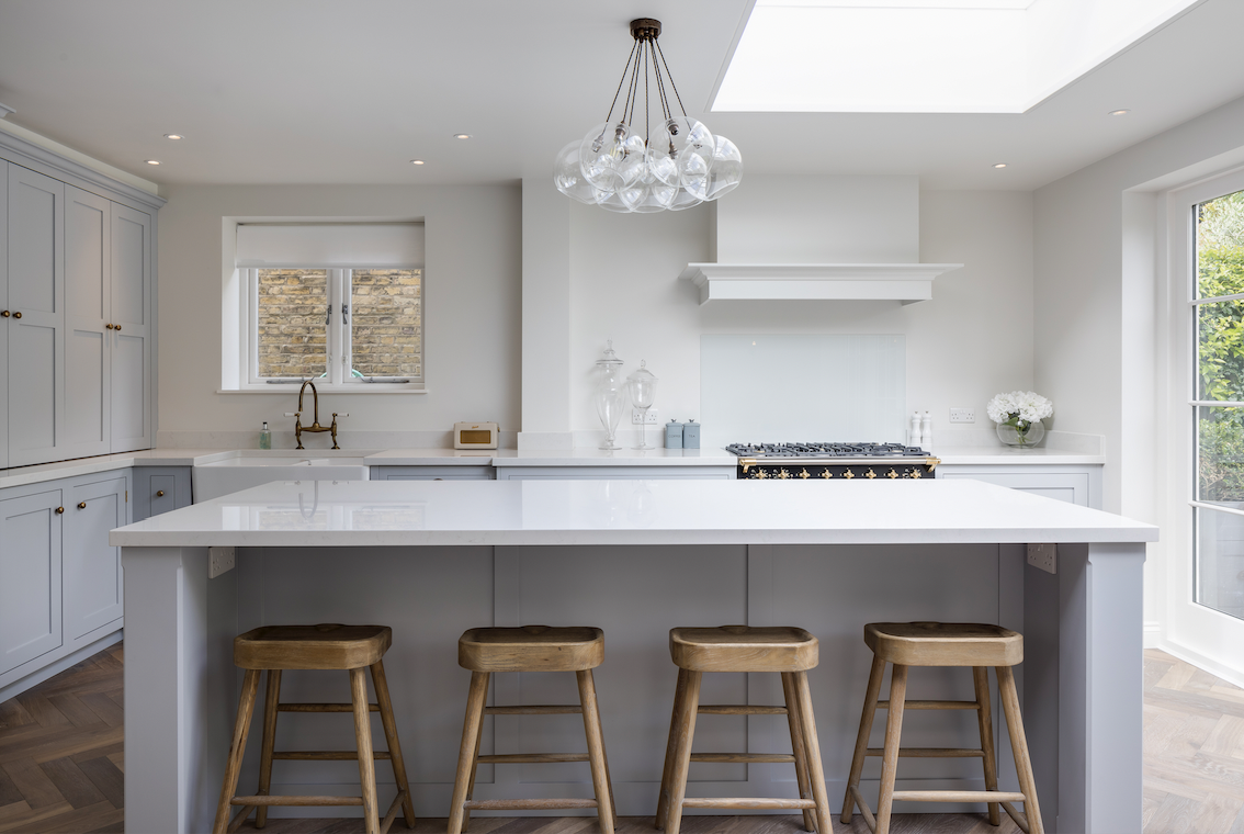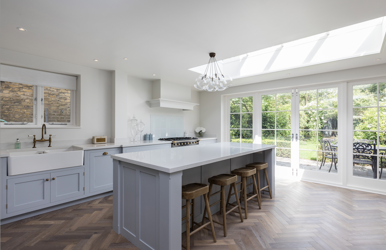 Structural works were undertaken – altering a doorway on a load bearing wall to lead into the large ensuite bathroom and removing the existing kitchen floor to create more ceiling height whilst installing new underfloor central heating. Huntsmore ran the building control process and any conversations with structural engineers to ensure that the project complied with building regulations.