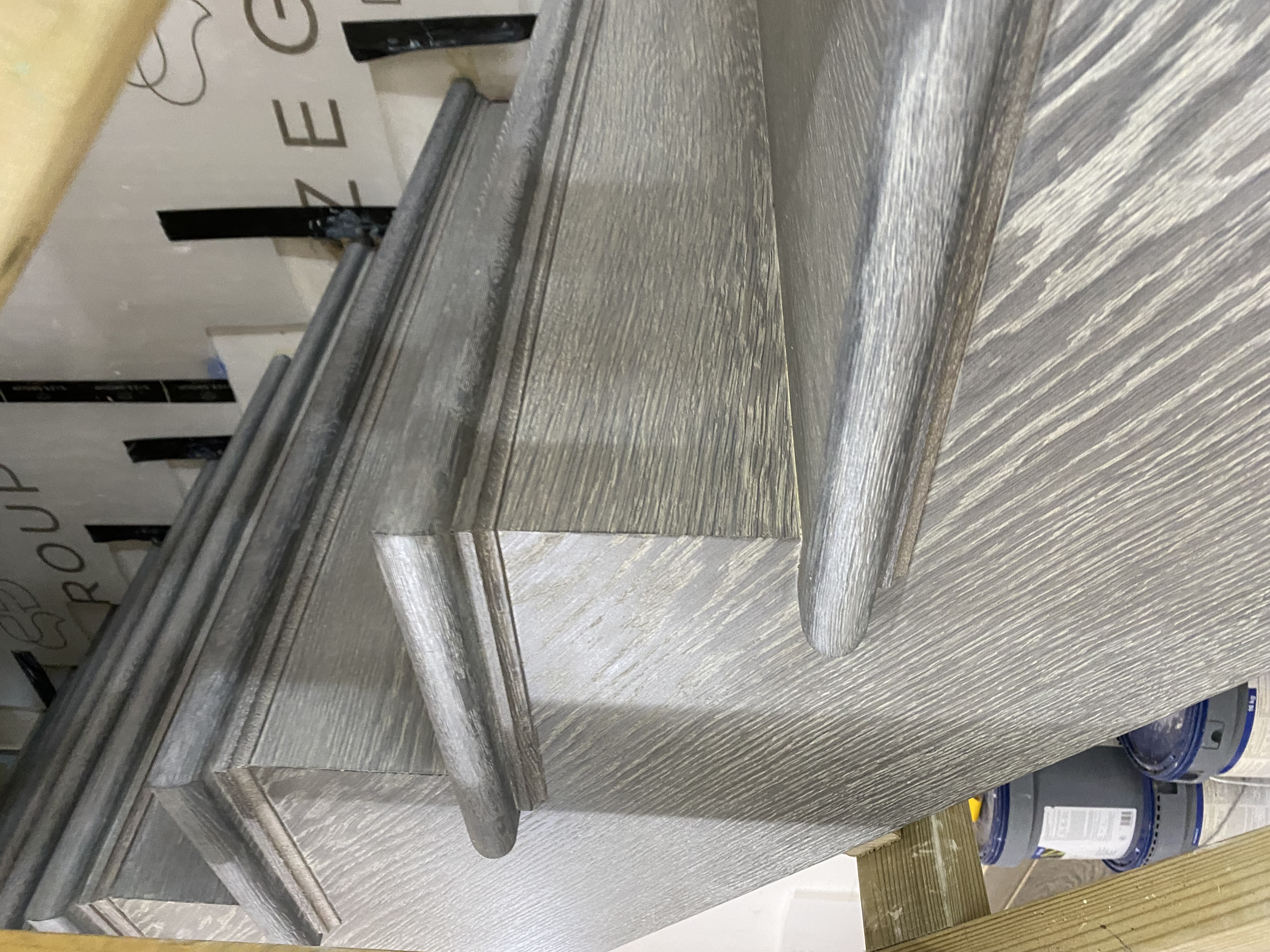 A wonderful project that we were incredibly proud to be part of. Amazing client with one of London's best design teams and certainly the number one contractor for high end resi work in the capitol and beyond. The project consisted of a range of mixed width plank from 232 mm wide to 402 mm wide with three floor levels being emtirely wall to wall plank length. The longest for this project was a smidge under 13 mts at 402 mm wide. Incredible dimensions for a core fumed material thats pre finished and in a grade of oak that that was next to blemish free. Included in the project spec was all the stair case elements you see in the images.