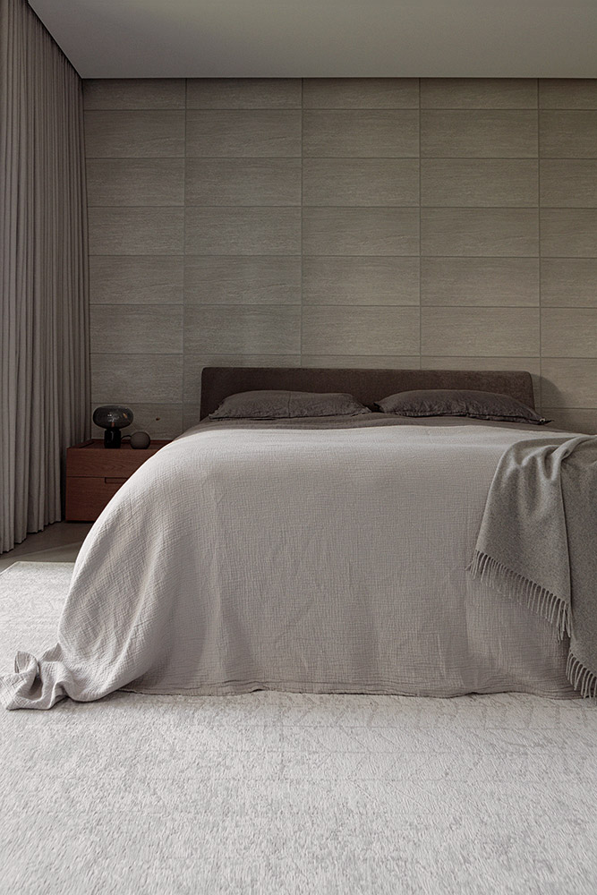 Wood is pivotal in introducing warmth and tactile elements to the interiors. Purposefully leaving some concrete exposed as a nod to the building's structure, the slight imperfections in the material add a unique texture, making it a focal point of the space. Soft, natural fabrics were strategically chosen to enhance the minimalist architecture, creating a warm and inviting atmosphere.