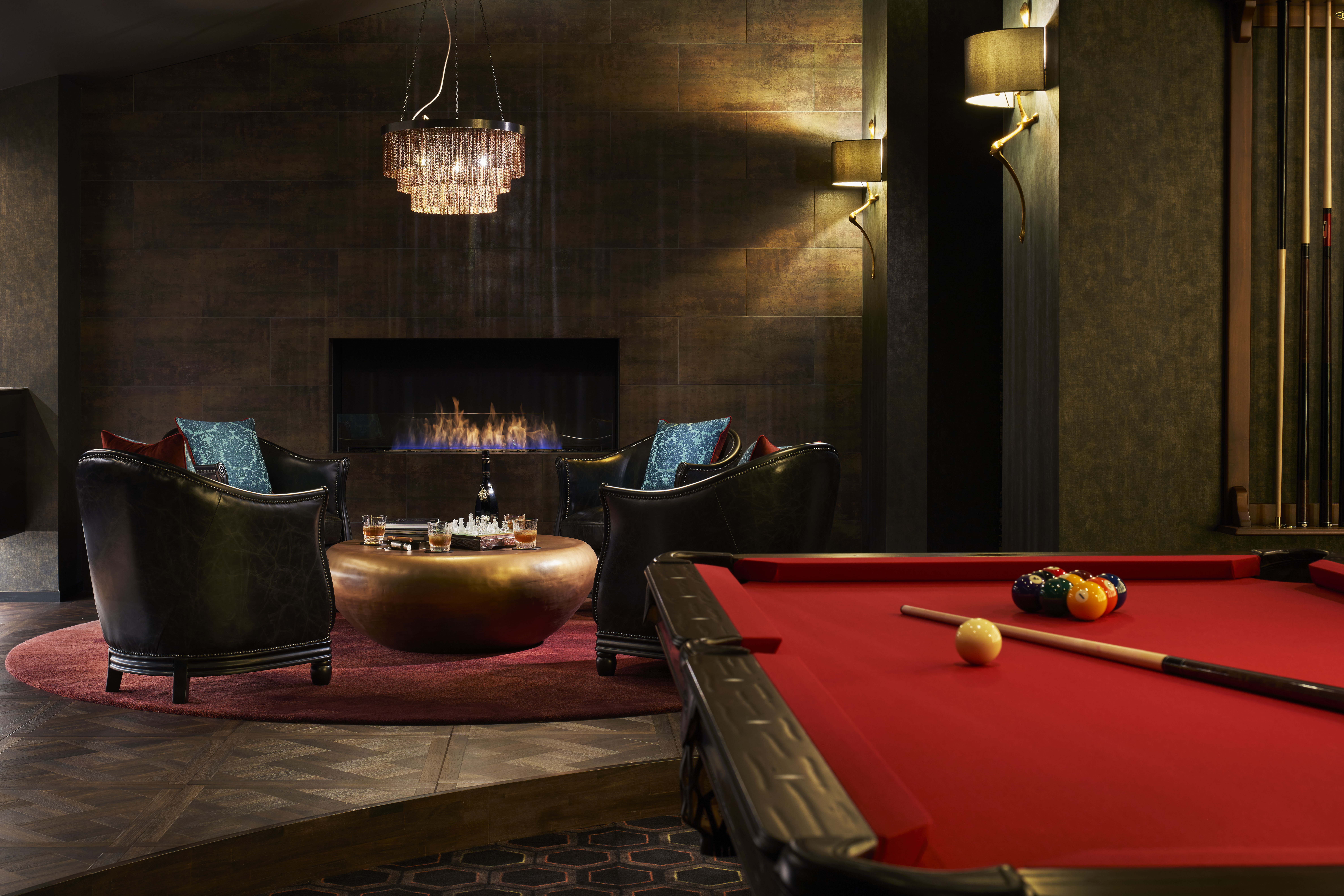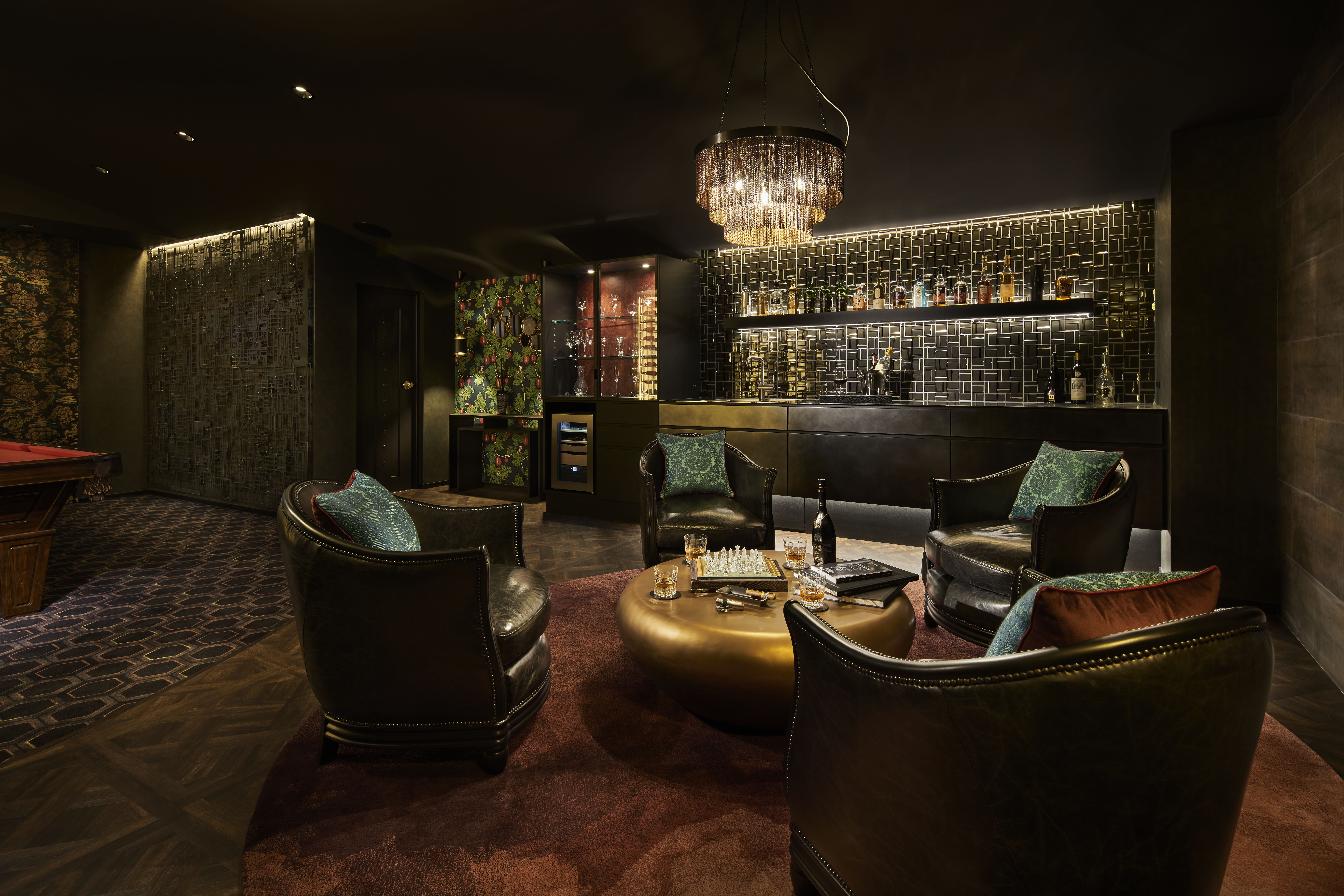 One very important element of the brief was for the client to have a ‘man-cave’ where he can entertain friends and business clients away from the family areas of the house. On the first floor, it is reached by a private staircase directly from the entrance and is a large L-shaped space enjoying the full height of the sloping ceiling.