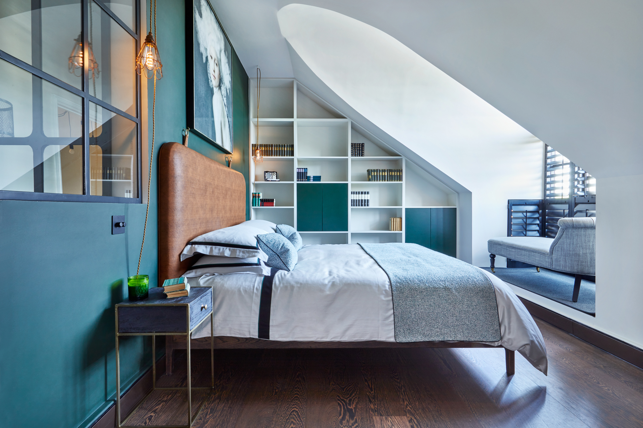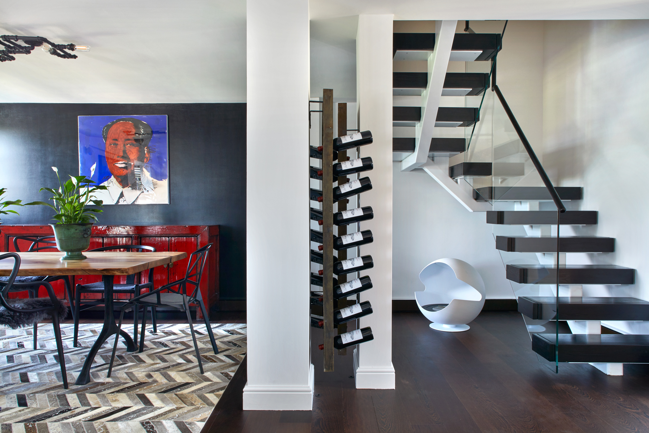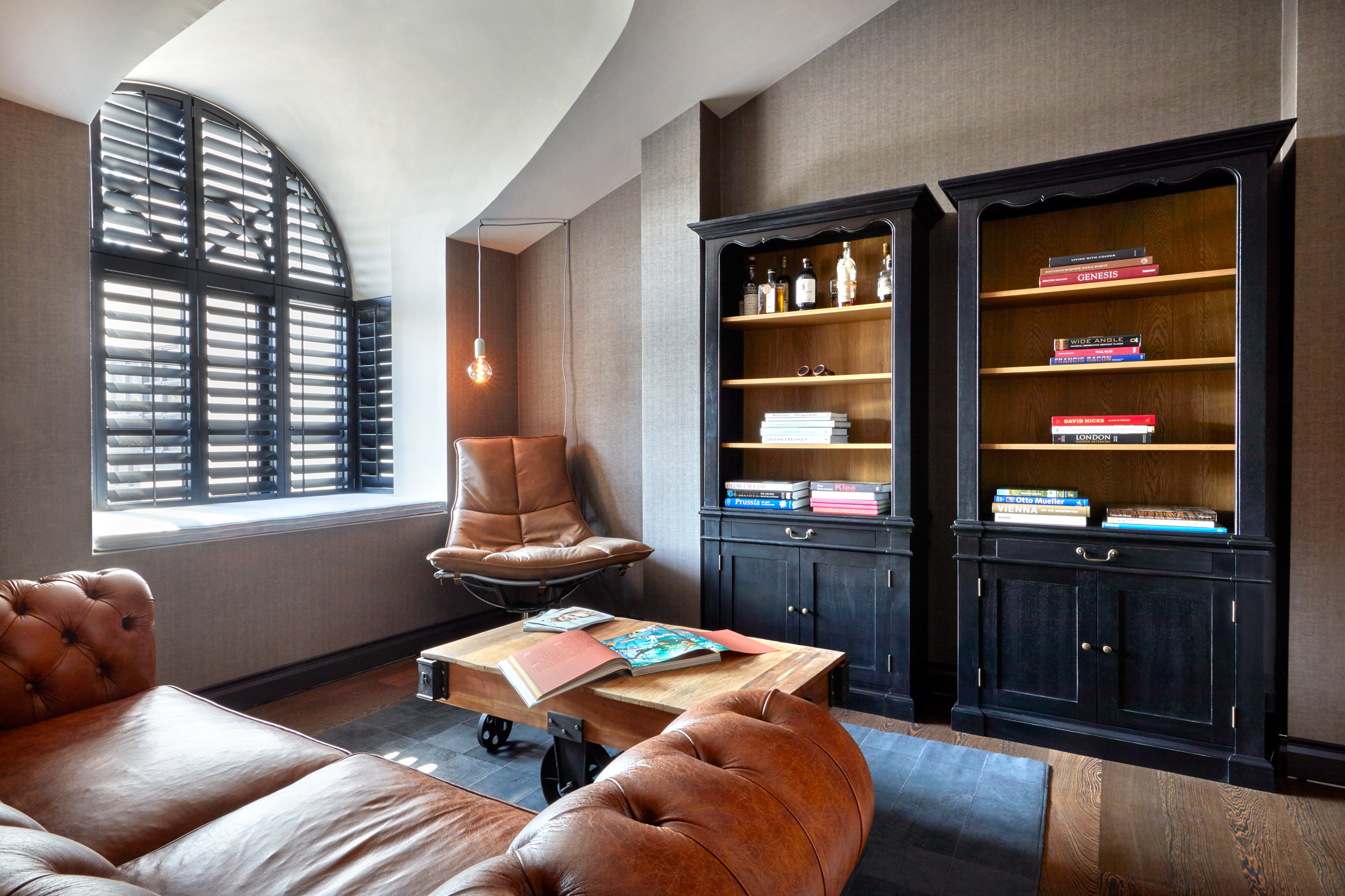 A young entrepreneur in the technology industry appointed us to renovate and furnish his canal-side penthouse apartment with stunning views of Canary Wharf. With a mathematical mind, he gave us precise instructions – he did not want a cluttered ‘overly decorated’ home but he asked for our help to start an art collection and create a dark and moody man cave where he would enjoy entertaining, gaming and programming. For the rest of the home, we created clean open spaces to let the art shine.