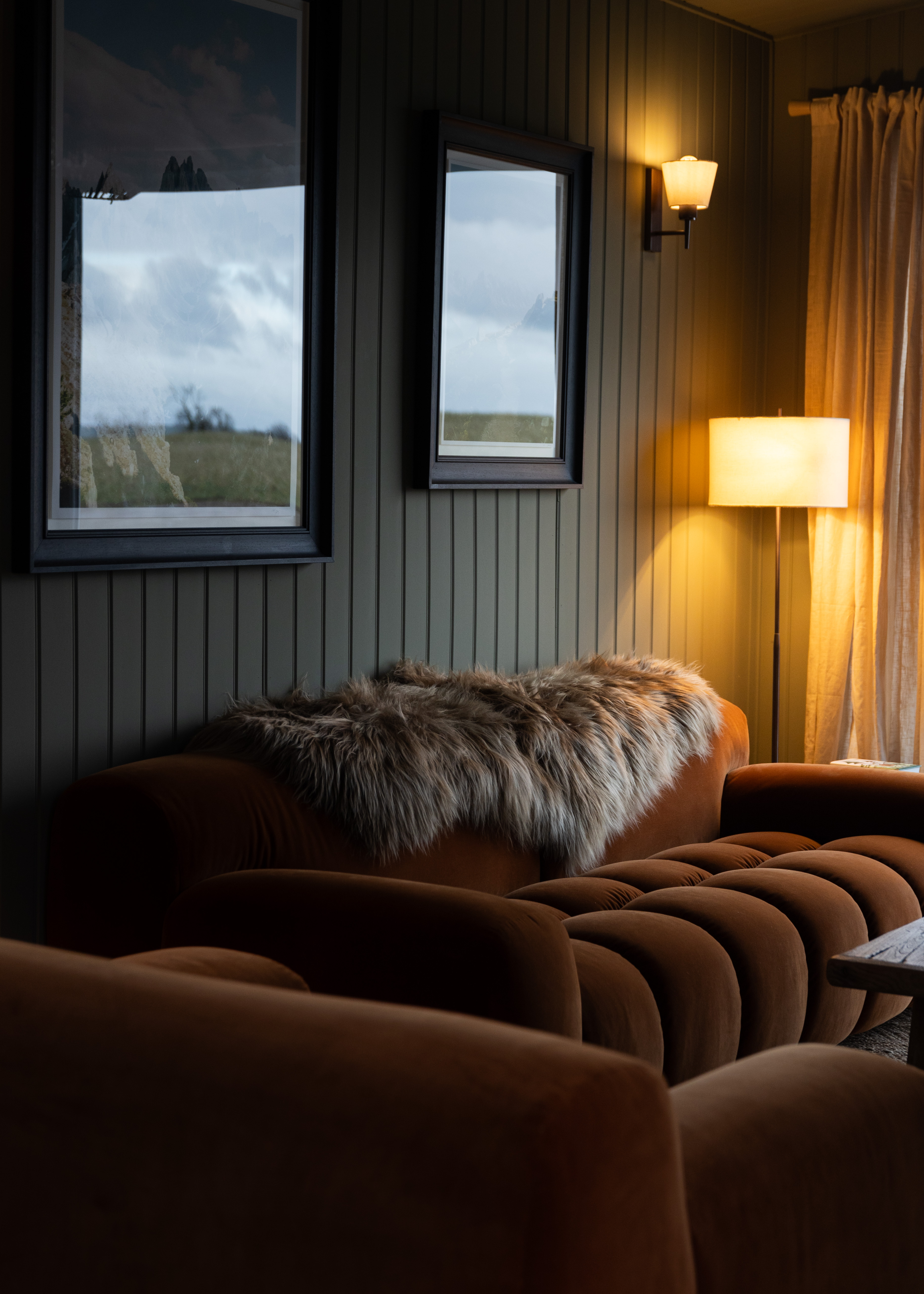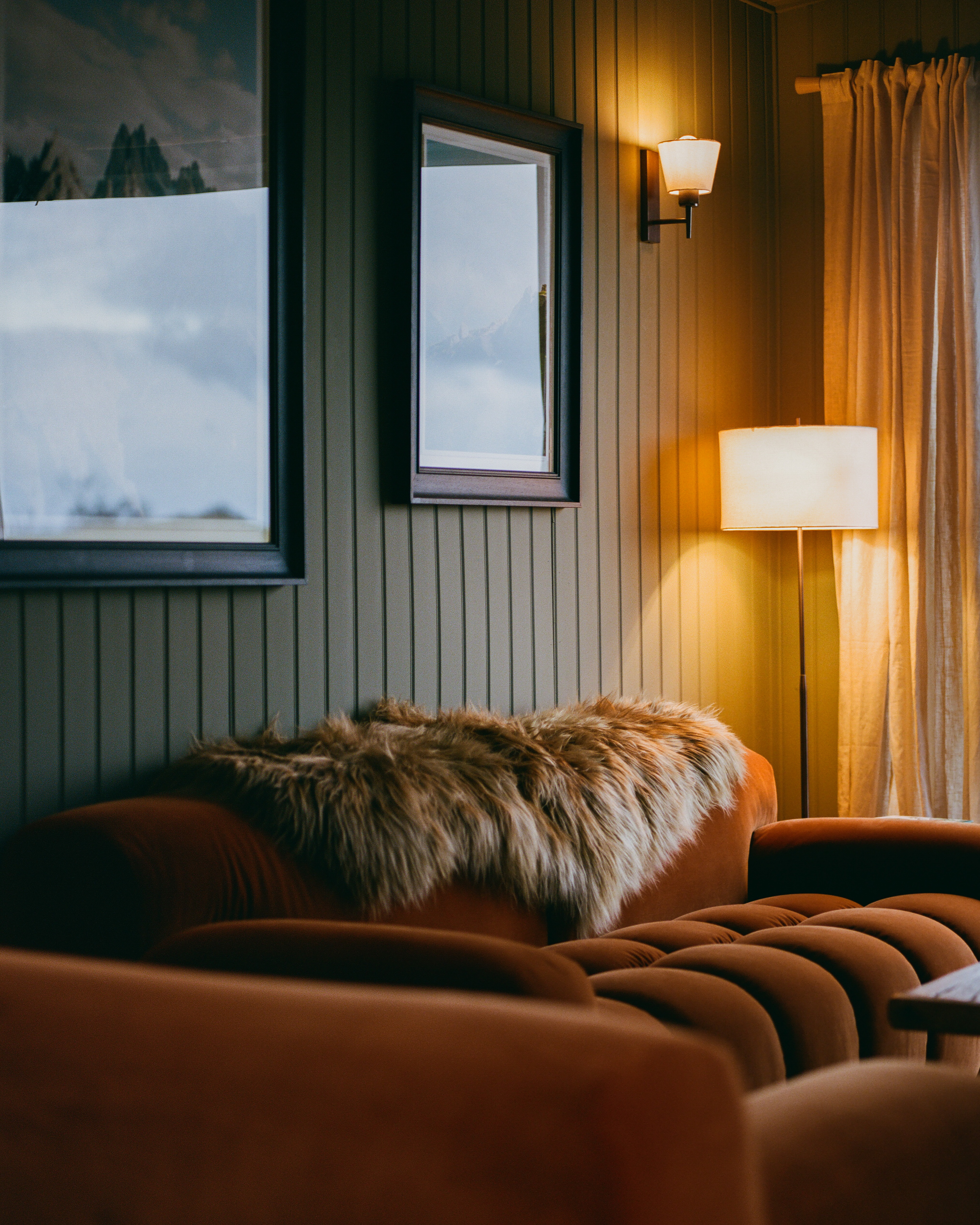 The theme of the newest cabin The Story was inspired by the UK’s top film photographer, Benj Story’s, film photography of exhibition Terra Visum - it showcases brilliant landscape work from around the world shot over the last few years is on permanent exhibit in the cabin. The space itself evokes a rustic warmth and innate comfort that is facilitated by the lighting collaboration with Industville."