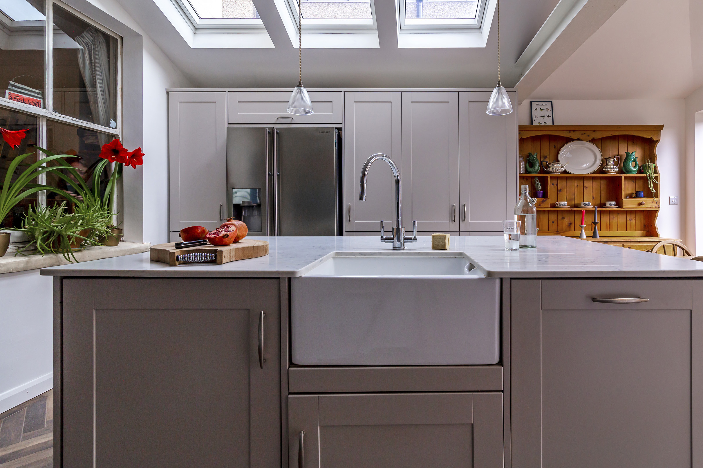 As well as sourcing and installing the key elements, we helped the client to incorporate existing furniture pieces into her new kitchen, including original Ercol chairs and external window and sill. The result is a seamless integration of old and new.