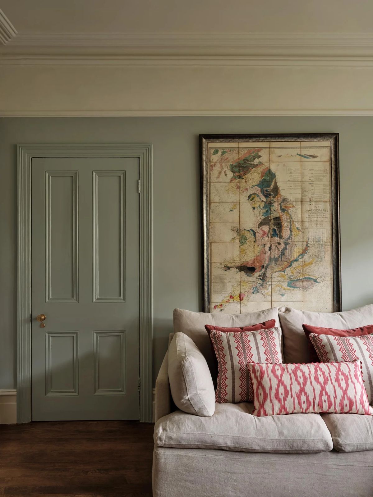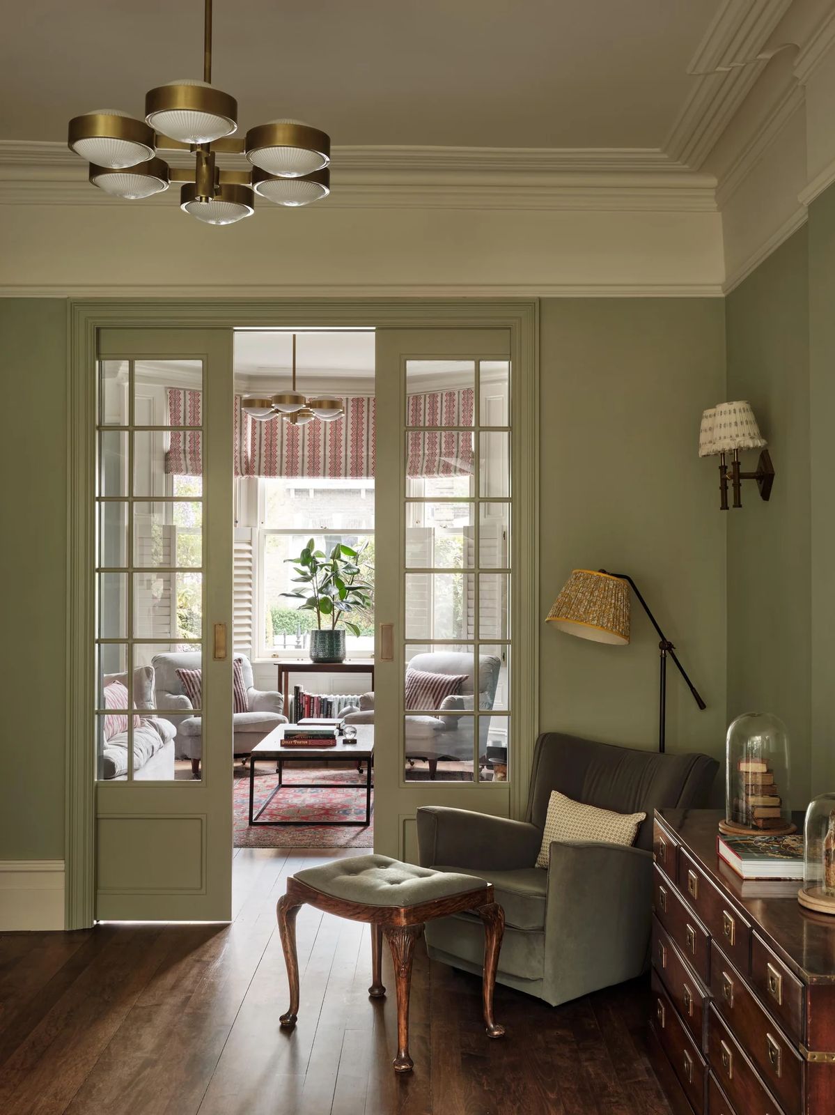 Based in North London, our client approached Nefarious with a clear and thoughtful vision for the ground floor of their Victorian home. Their strong sense of style and decisive input made the design process a true collaboration — they felt like an extension of the Nefarious team. The concept for the kitchen was inspired by the charm of a potting shed, bringing the outdoors in with a calming palette of green hues. A bespoke partition was introduced between the snug and the living room, offering both privacy and sound insulation. In the living room, a soothing blend of blues was layered with bold patterns to create a tranquil oasis that feels both vibrant and serene.