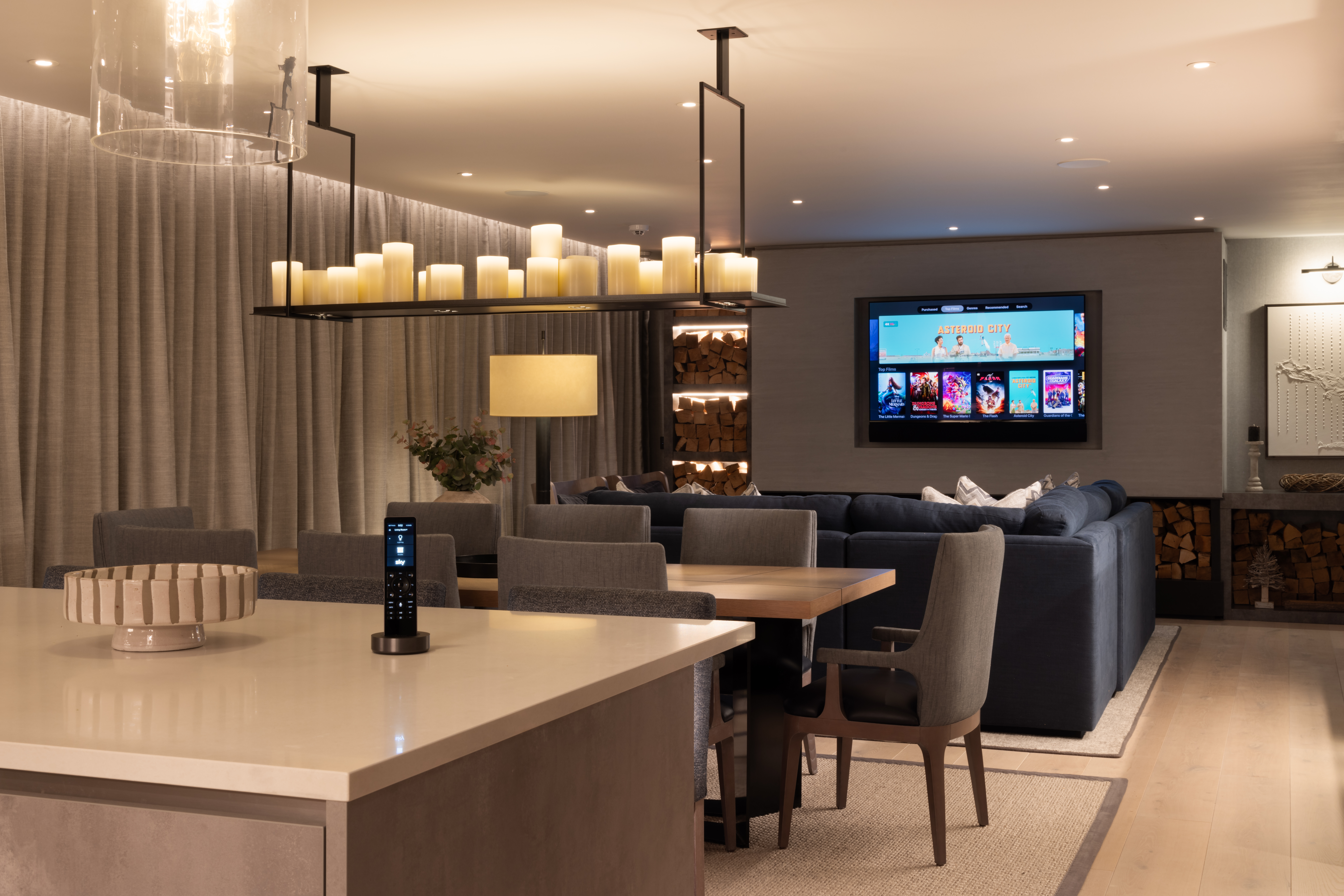 You are here: GLO project THE LAKE HOUSE See GLO profile The Lake HouseOrluna LightsSavant Control SystemLutron Motorised Drapery2N Door Entry Gallery