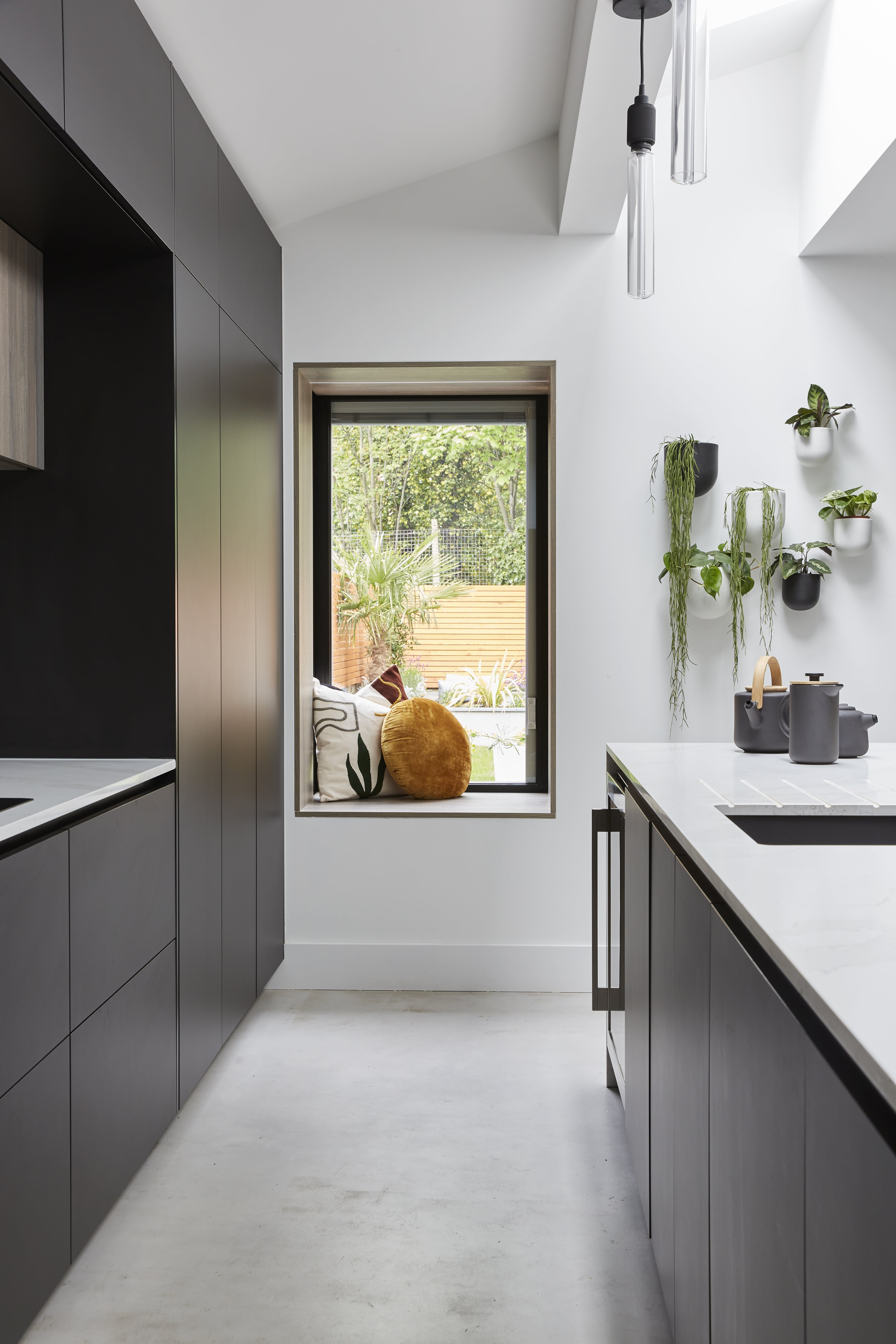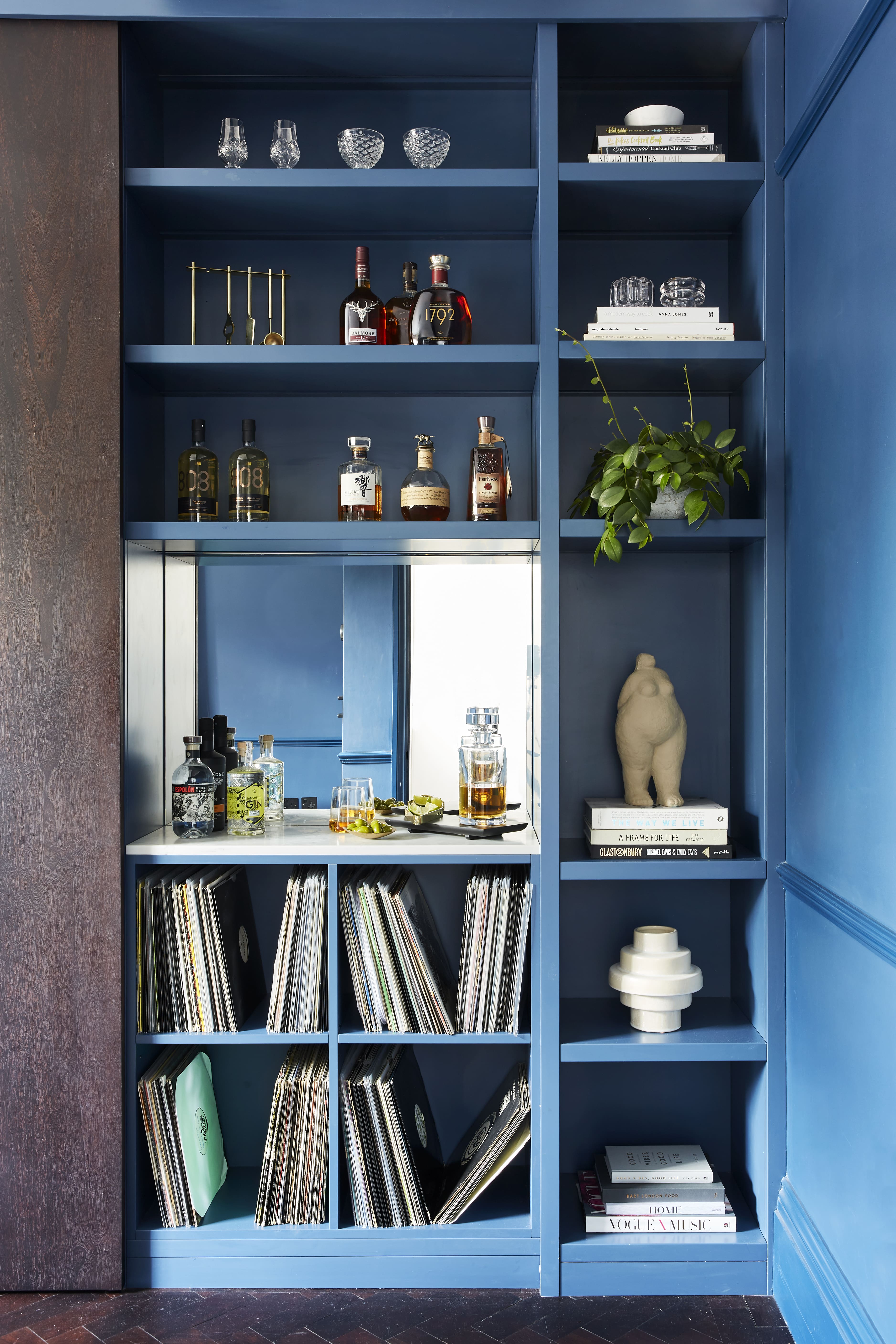 The house, split into a mix of period features and modern furniture, flowed well together. Predominantly monochromatic, the house was injected with jewel tones like deep blues and tactile fabrics. Touches of heavy metal in the lighting and ironmongery complimented the modern element of the period rooms.