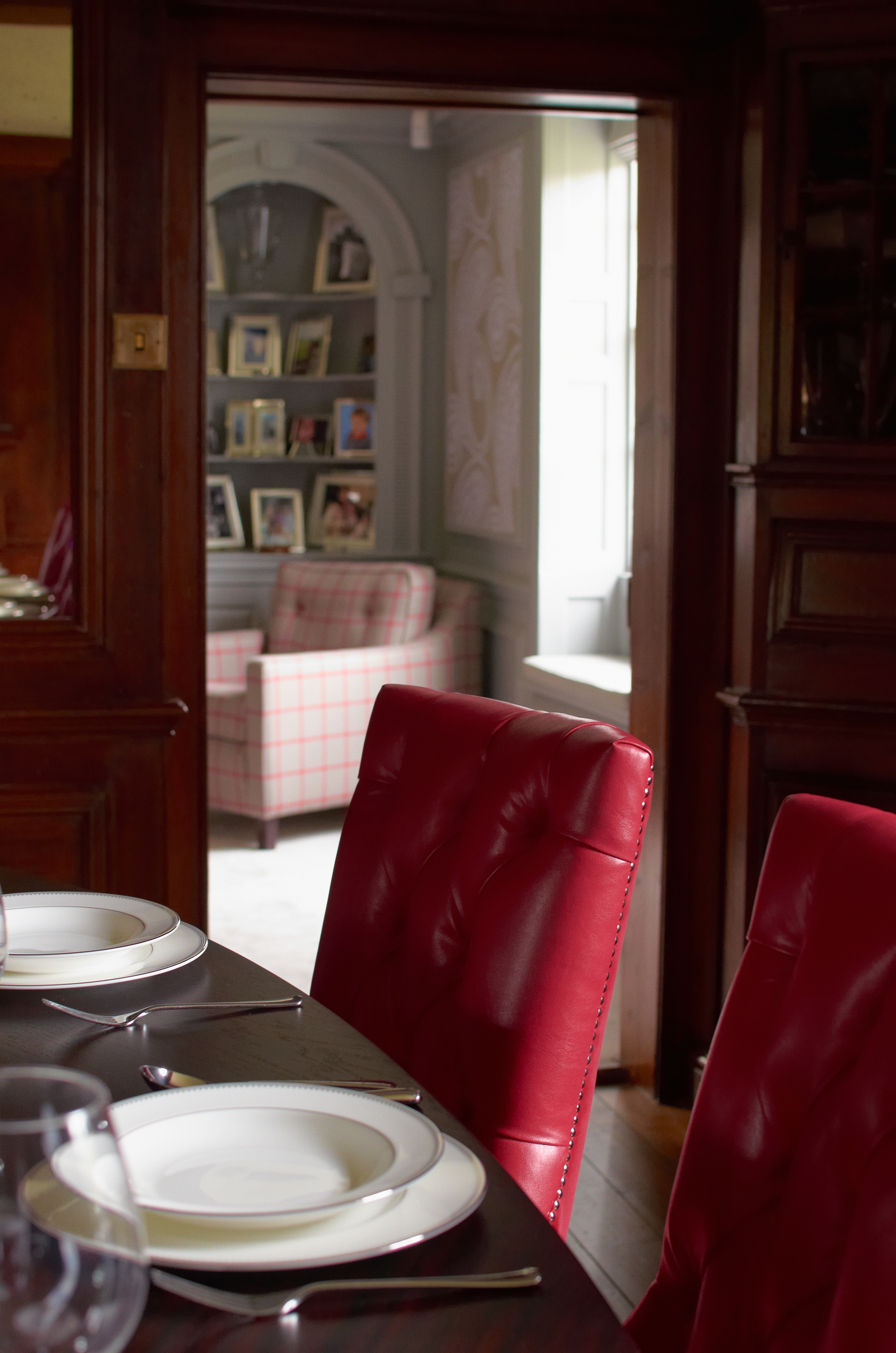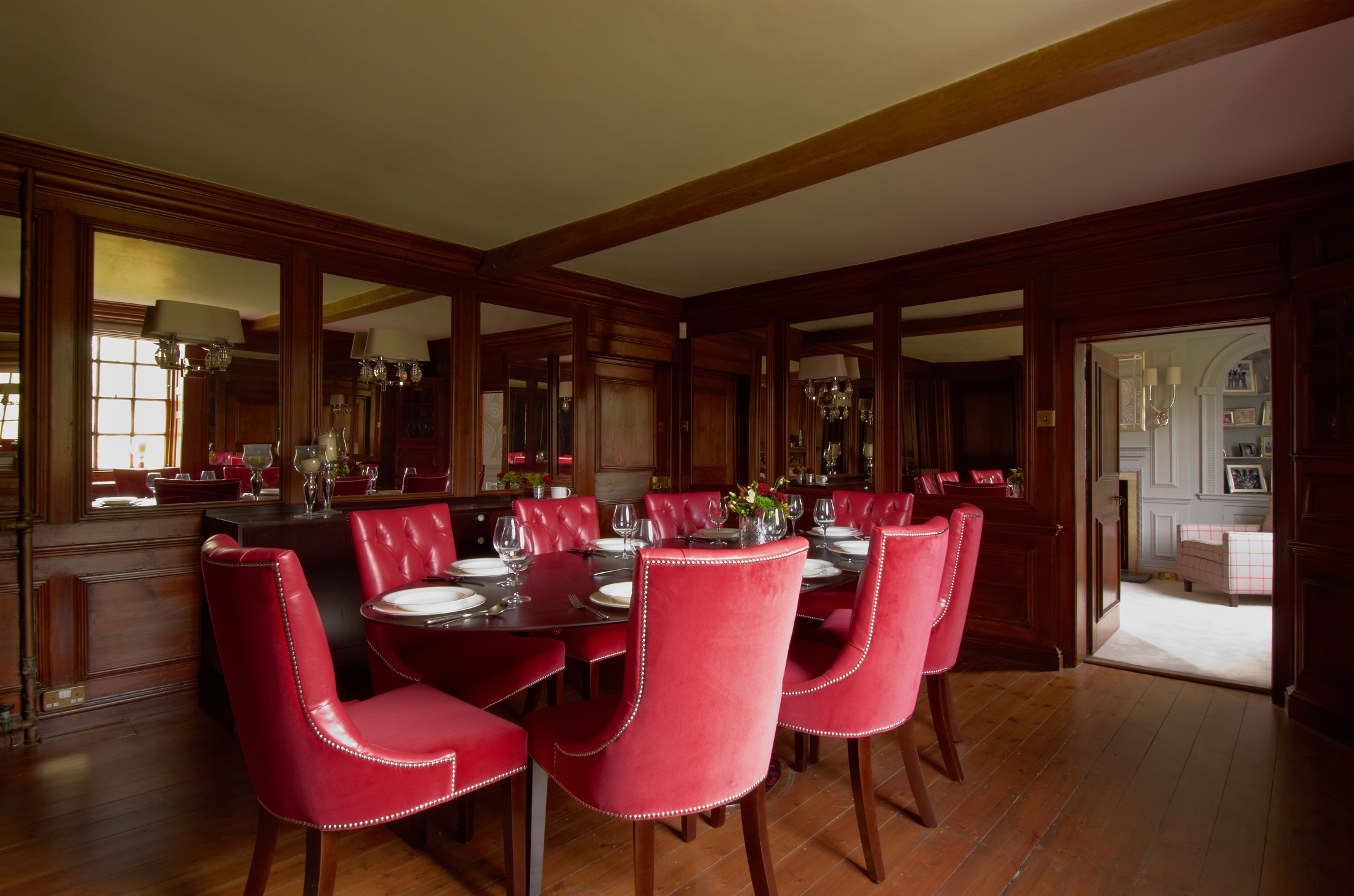Lindsey designed two function rooms in this listed period manor house in Surrey. Both rooms were stripped back to their bare bones before being French polished and decorated to preserve the wooden panels. Many pieces of furniture are bespoke to ensure their size and finish sit harmoniously within the space. Lindsey is currently working with the clients on the second phase of the project, an extension and renovation of further rooms.