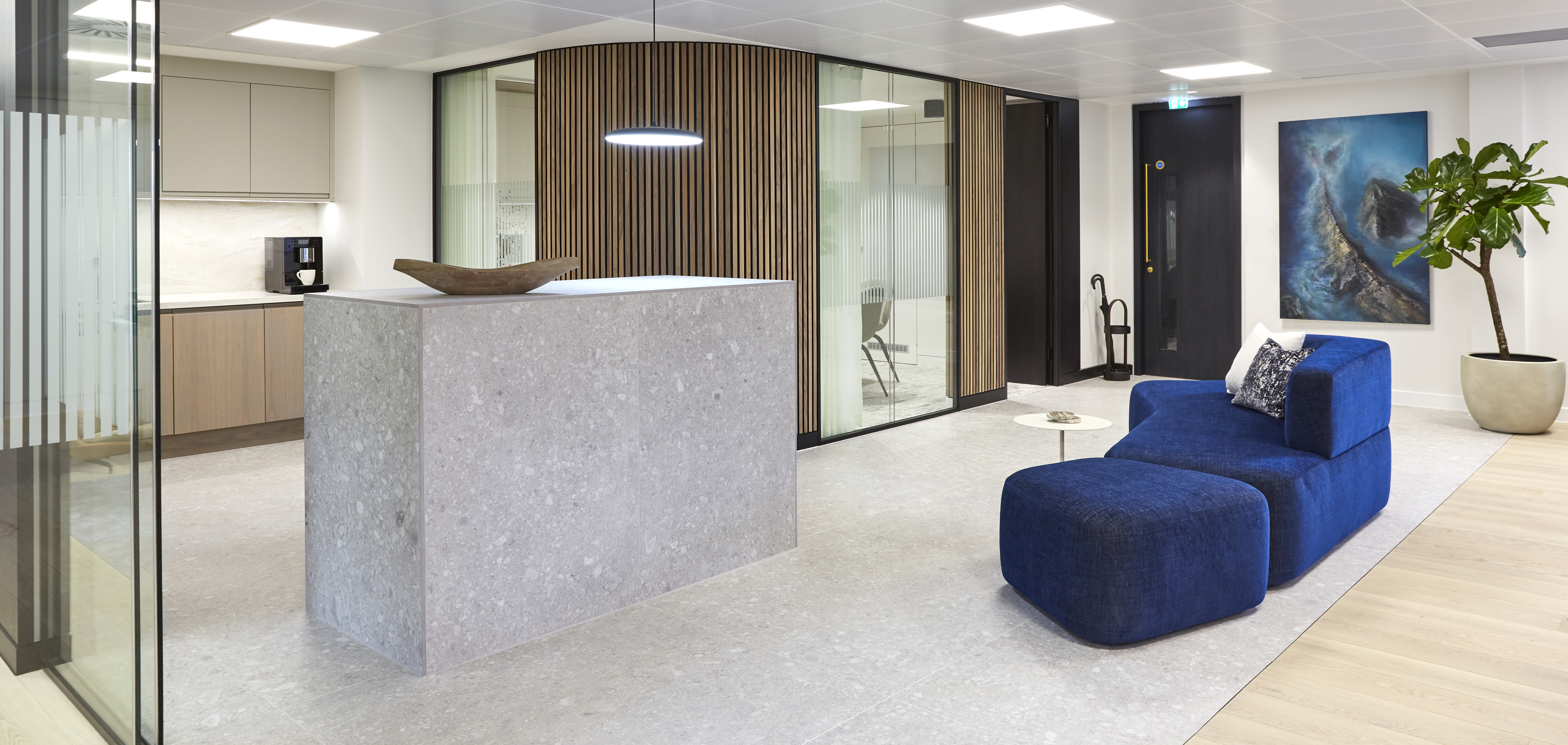 This boutique office located in Mayfair appears to be a meticulously designed and inviting space that accurately reflects the values and needs of a prestigious asset management firm and its staff. It serves as a prime example of how strategic interior design can enhance the overall atmosphere and productivity of a workplace.