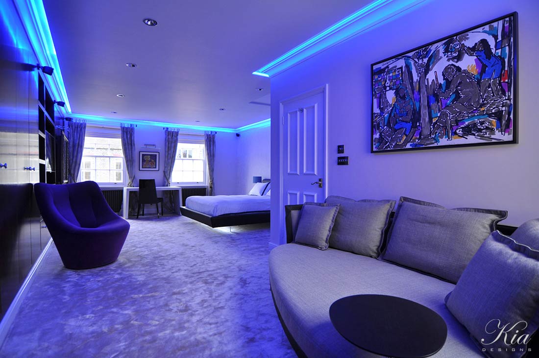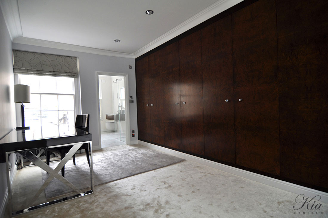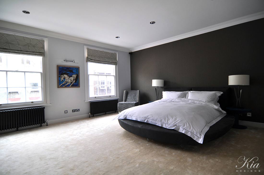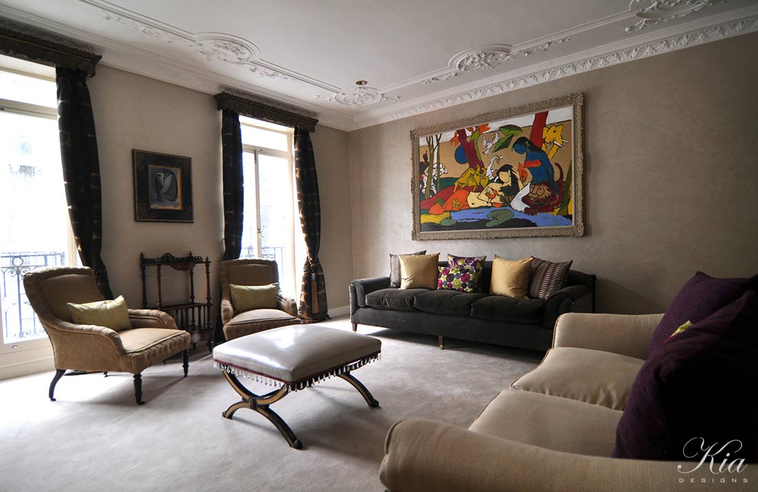 Kia Designs completed a full refurbishment of this spacious 6 storey Mayfair townhouse, which had to satisfy the traditional tastes of the older generation, but also appeal to their 2 sons. Complimentary colour palettes throughout the house allowed the rooms to relate to each other, whilst textured pieces created subtle changes in mood and style. Decorative period features of the house were restored and their reinstatement returned a lot of character to the rooms.