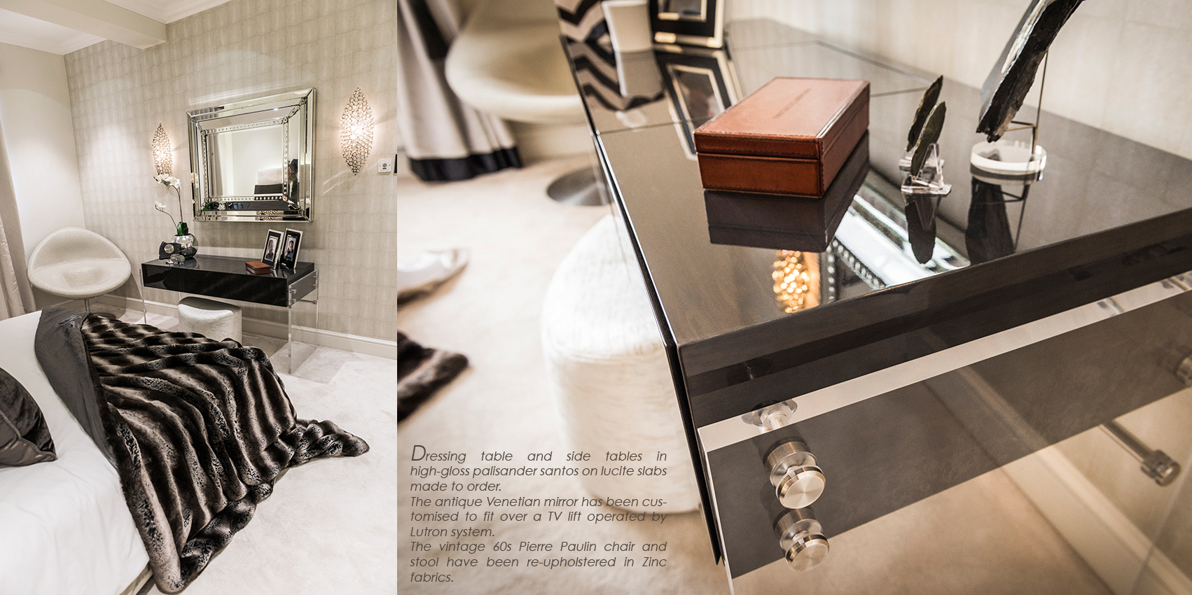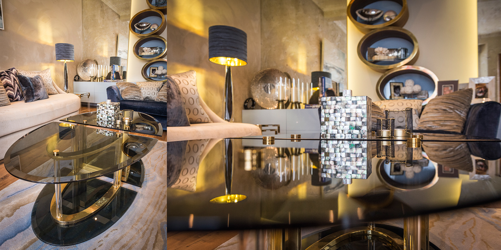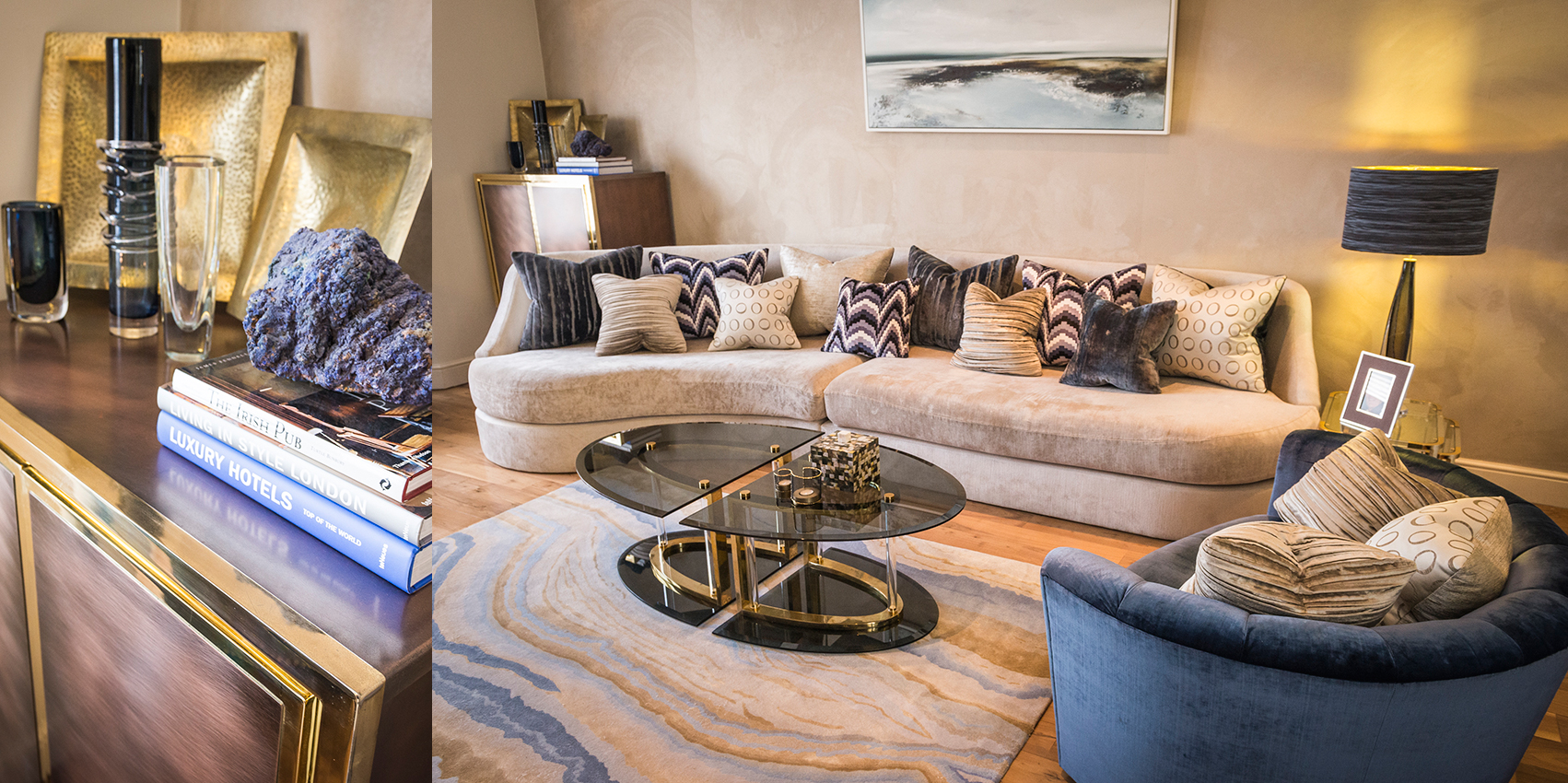 As the client had no own furniture or art work except for the one oil painting of the Irish coast, that became a major inspiration in developing the design scheme. Soft textures and stormy hues reflect rugged beauty of the Irish coast from the oil painting that inspired this design scheme with a homage to mid-century aesthetics.
