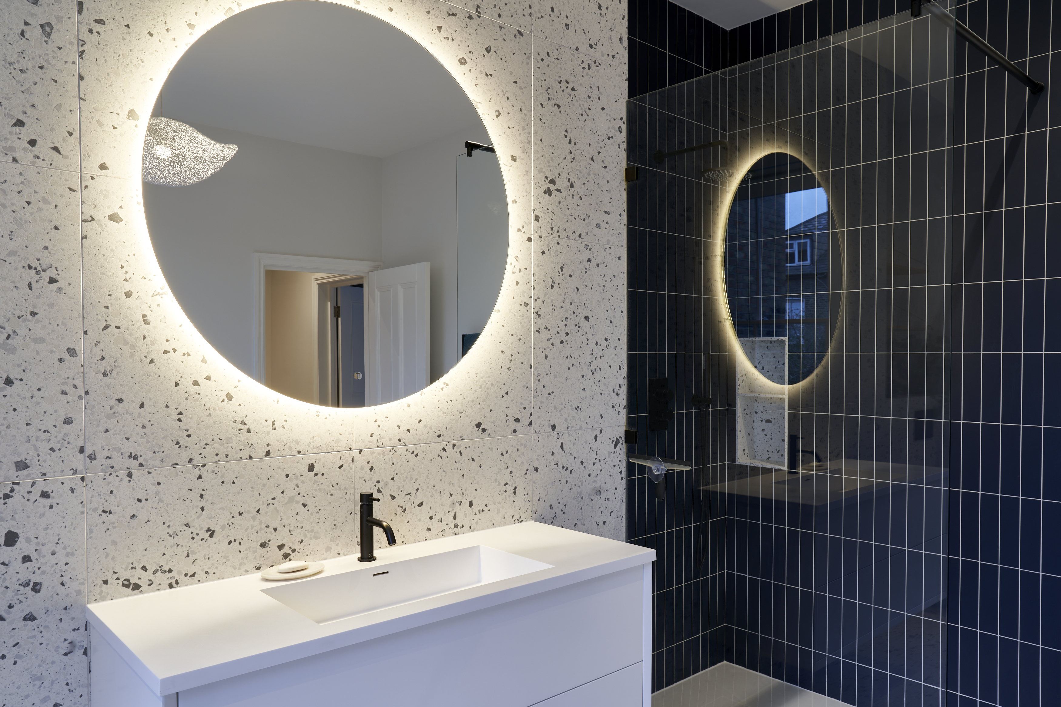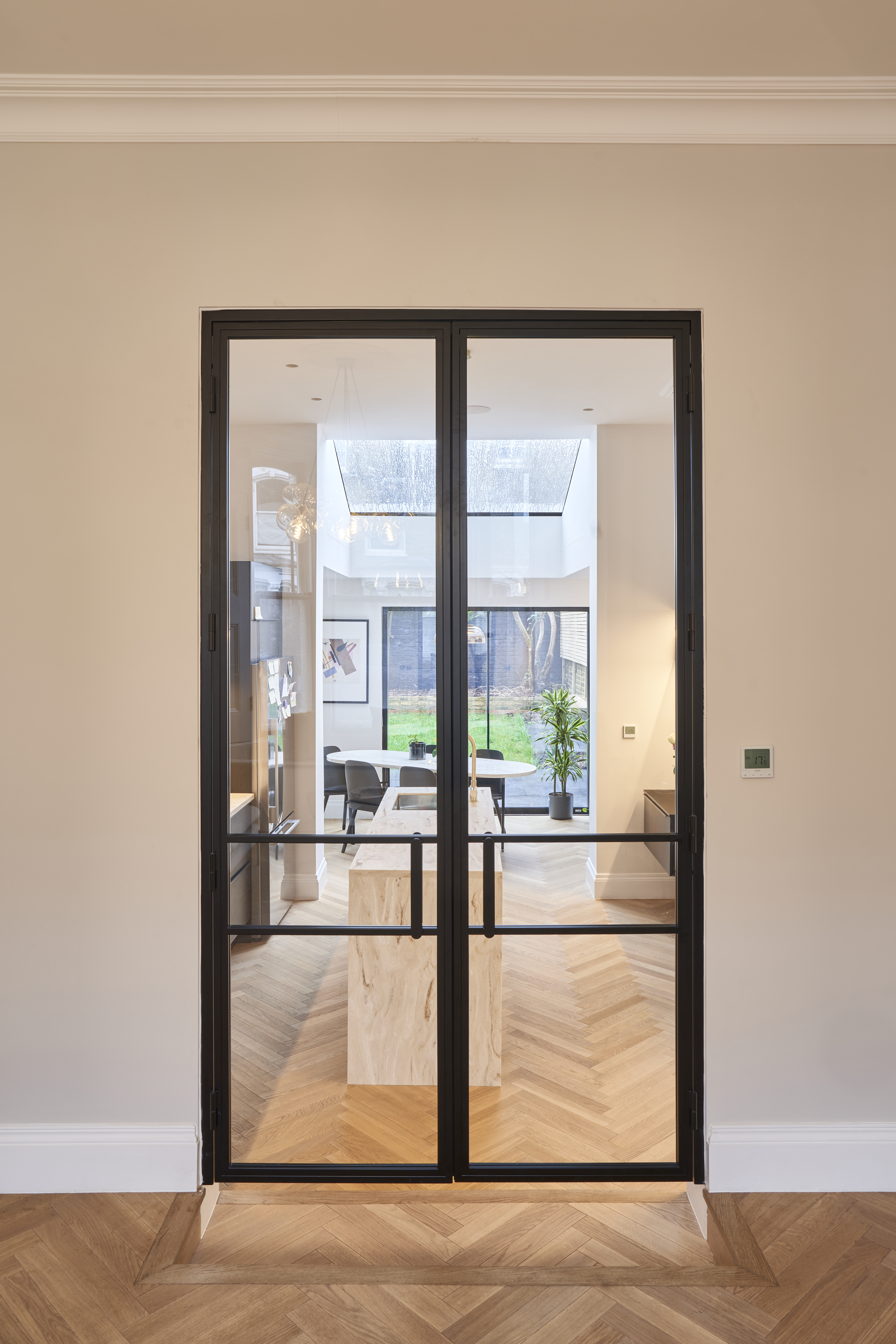 A Thermally Efficient Home with Air Source Heat Pump - The client connected with us through Design For Me - he needed someone that could completely take the strain away from the renovation of a 4 bedroom house he had just purchased. The house had not been updated for a long time, but had huge potential. As the rear garden was already relatively small it was decided to work with the existing foot print, improving, rebuilding, redesigning the existing extension. As the house is in a conservation area we applied for Planning Permission to change the external experience along with installing an Air Source Heat Pump. In order for the house to become thermally efficient we took it back to its bones, we insulated throughout, including the external walls. Underfloor heating has been laid throughout. We tendered and appointed the contractor and MCS accredited ASHP supplier - working closely with them both to provide suitable heating and hot water. Further sourcing & design included glazing, flooring, lighting , kitchen design, bathroom design, joinery design, fixtures & fittings, along with help with furniture. The client now has a low energy use house.