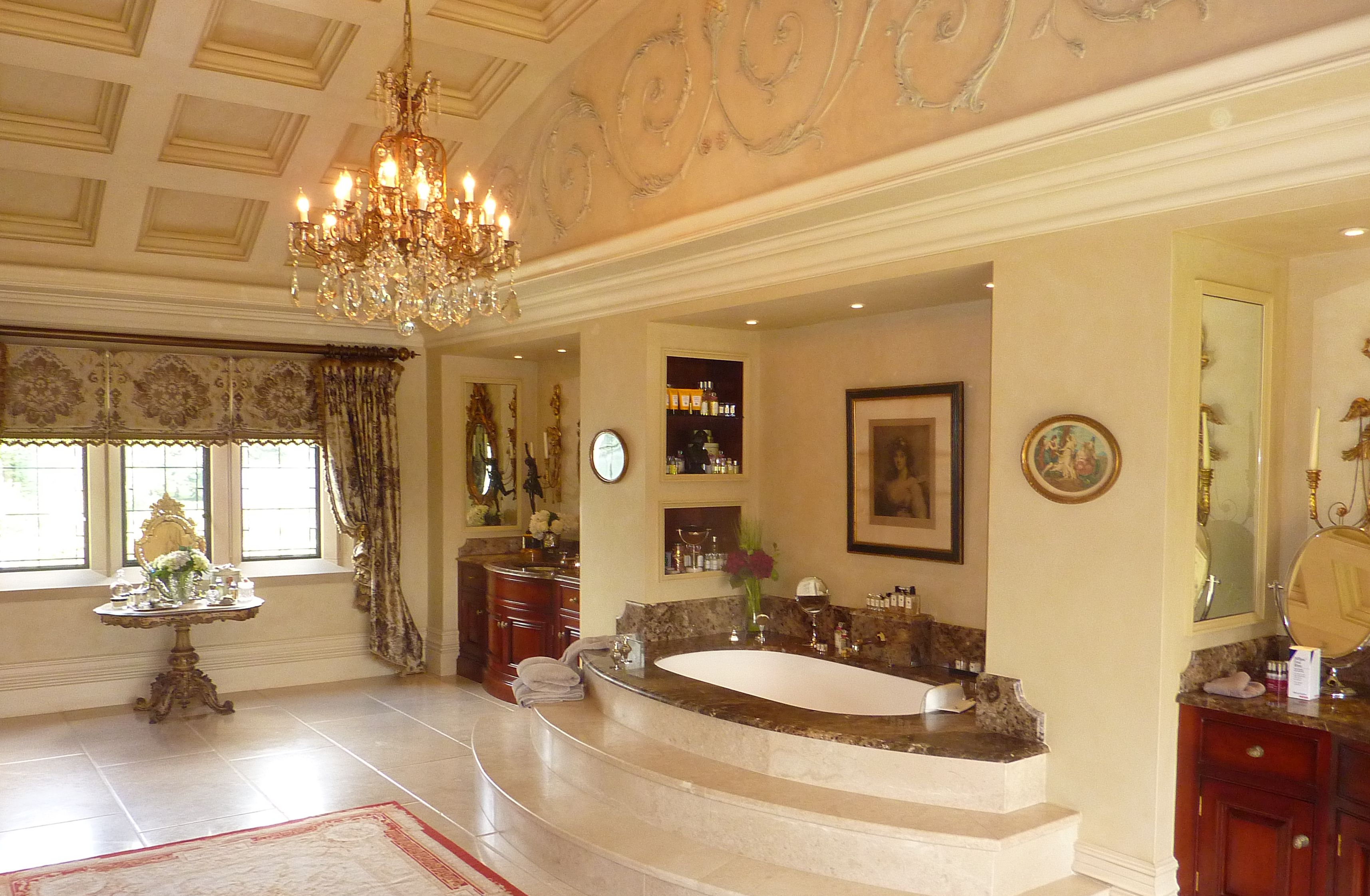 We removed the dividing walls to create a large elegant space and then removed the ceiling to form a barrel vaulted detail allowing us height to hang a chandelier.