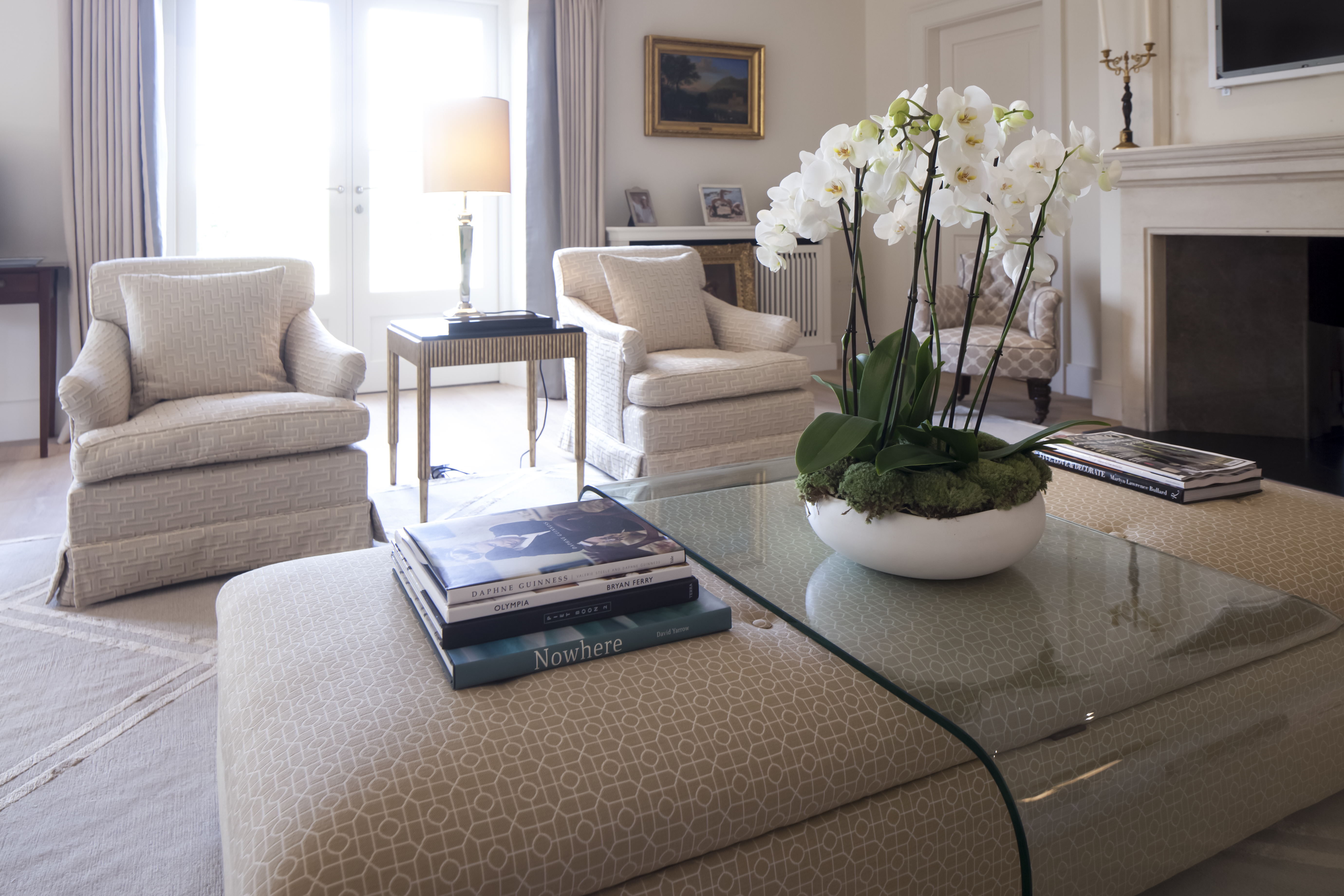 The 1980’s Manor House was reconfigured and extended to provide a large weekend home for this London-based family. The new accommodation included a swimming pool complex with garden room, changing rooms, gym, steamroom and home cinema. The refurbishment was extensive with new bathrooms, bespoke joinery and finishes. We reupholstered and gave new life to some of the clients' existing furniture and mixed in new items.