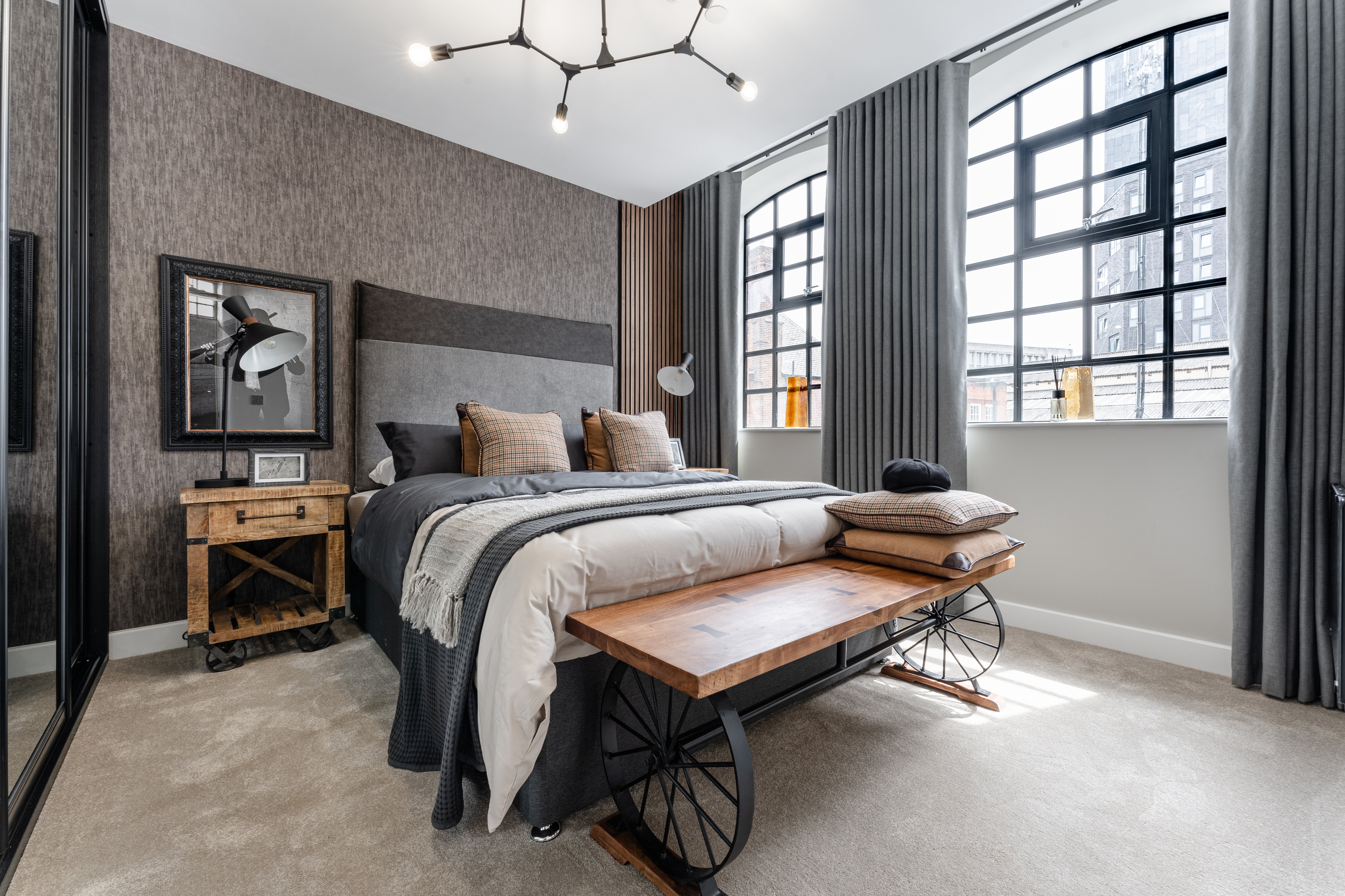A wonderful project in a trendy Birmingham apartment: Dressing large traditional windows with full-length wave curtains, in high-quality linen. The simple wave heading creates a contemporary and stylish feel, adding a luxurious touch to the space.