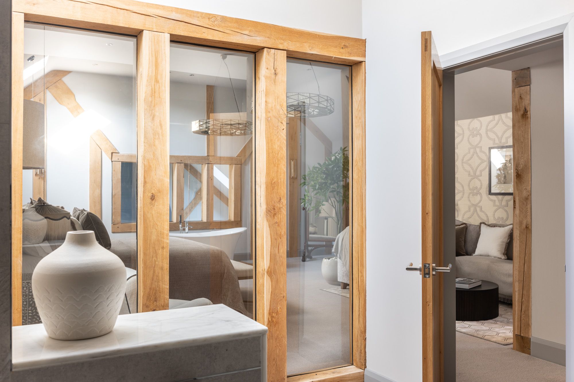 Stepping out from the indulgent shower room, with fully glazed views to the master, adds a very sensual