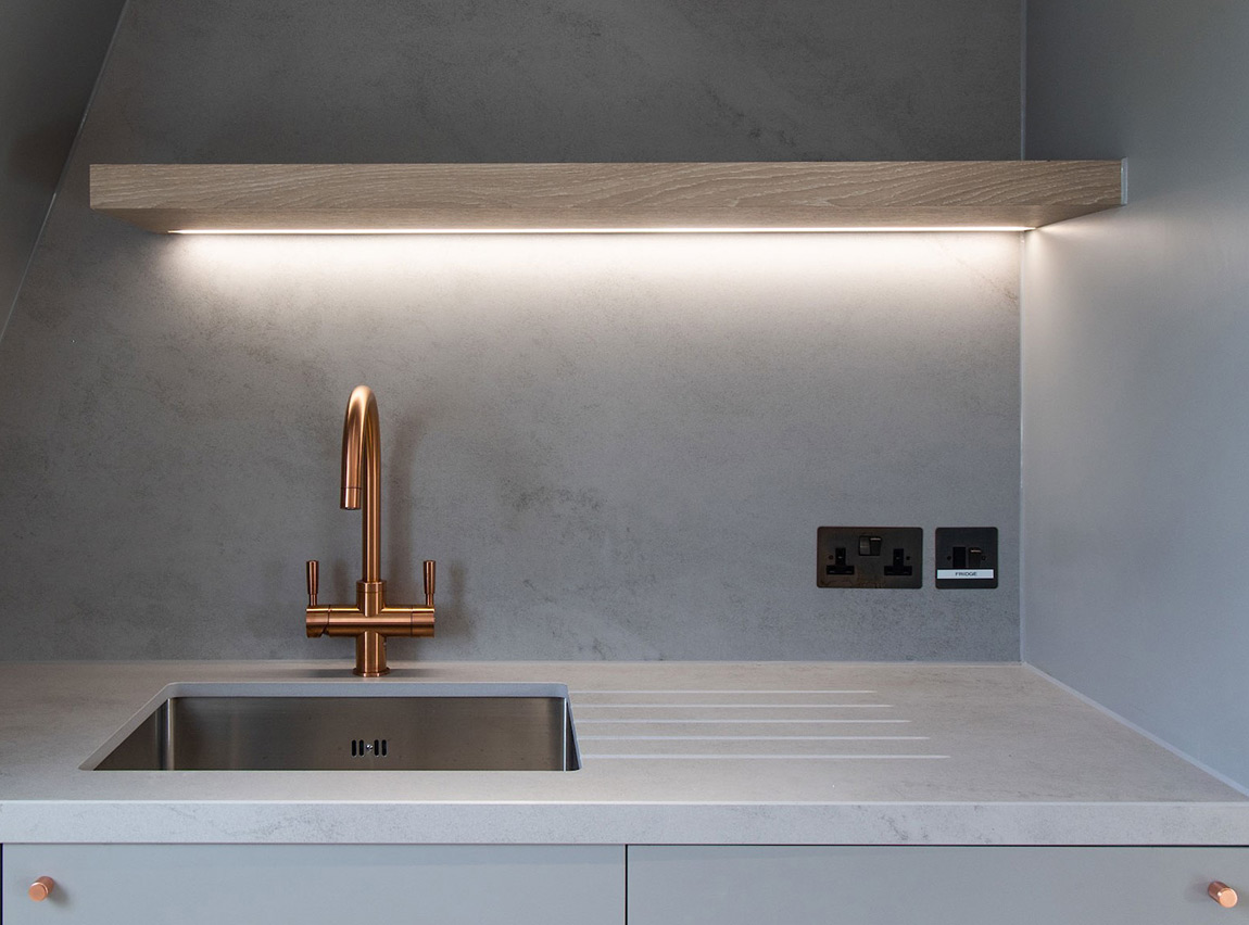 Similar to the trimless profiles these are a subtle yet stylish lighting profile. They are used in various bespoke joinery elements and alcoves to bring depth and highlight particular features within the office space.