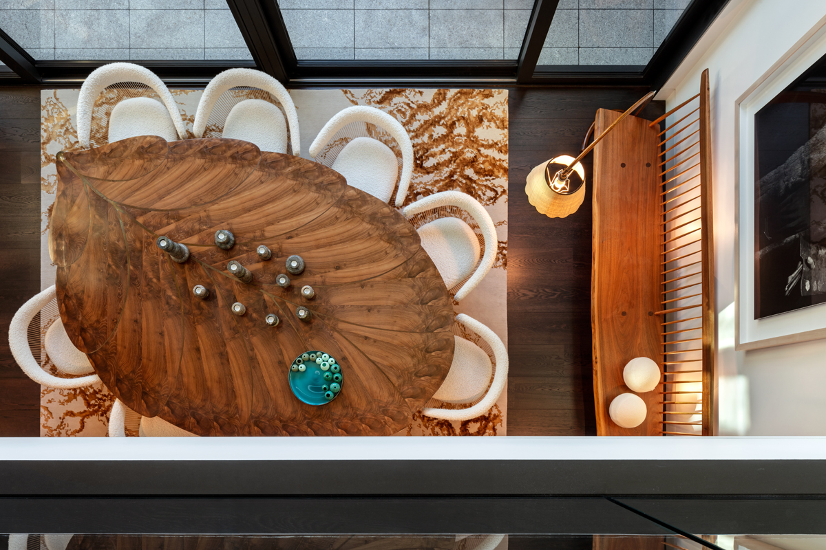 Floating above the streets of Soho and Fitzrovia, hidden from view but with the most spectacular views of the West End, is a penthouse, in fact two penthouses that were fused together to create a home for an American couple and their art collection, as well as pit stop for their extensive family.