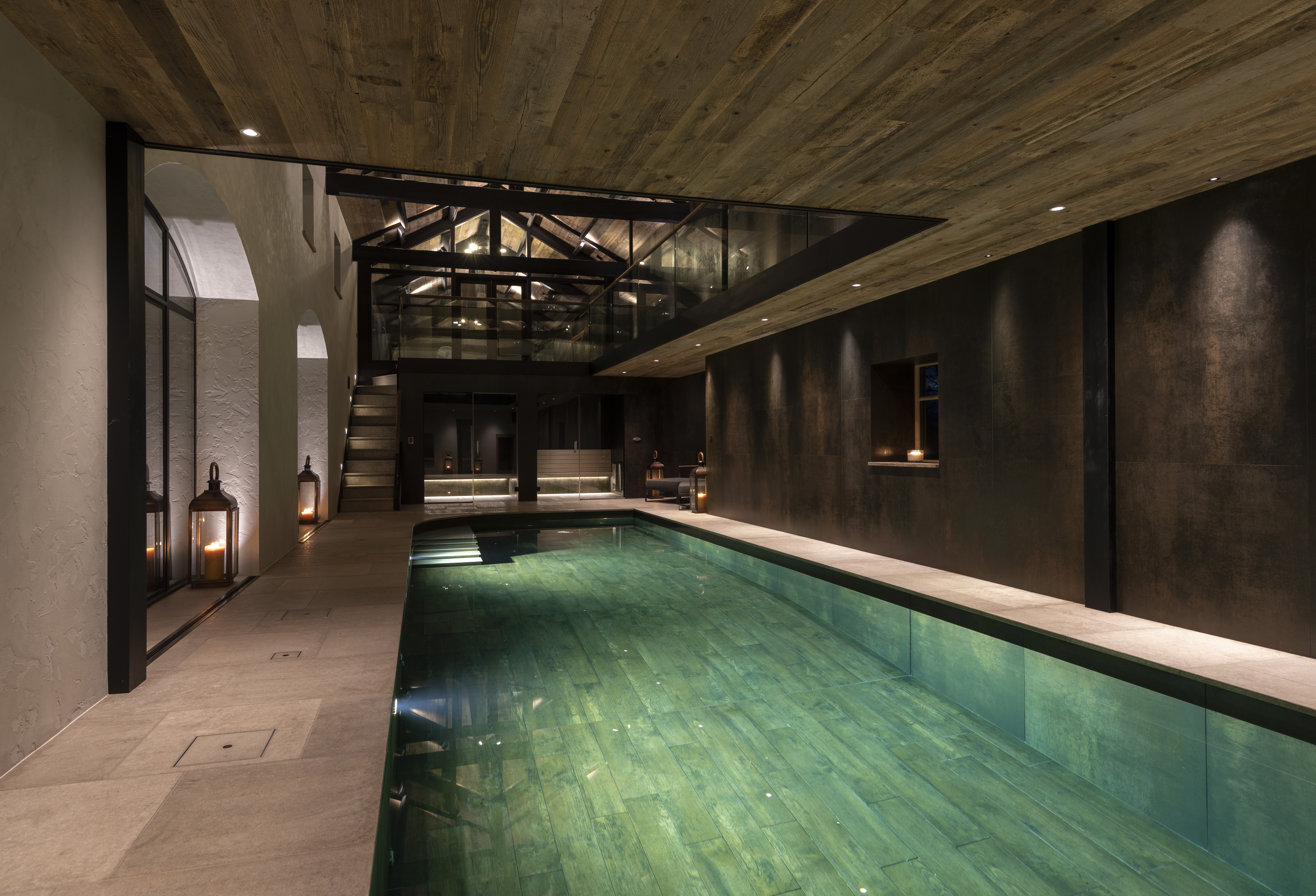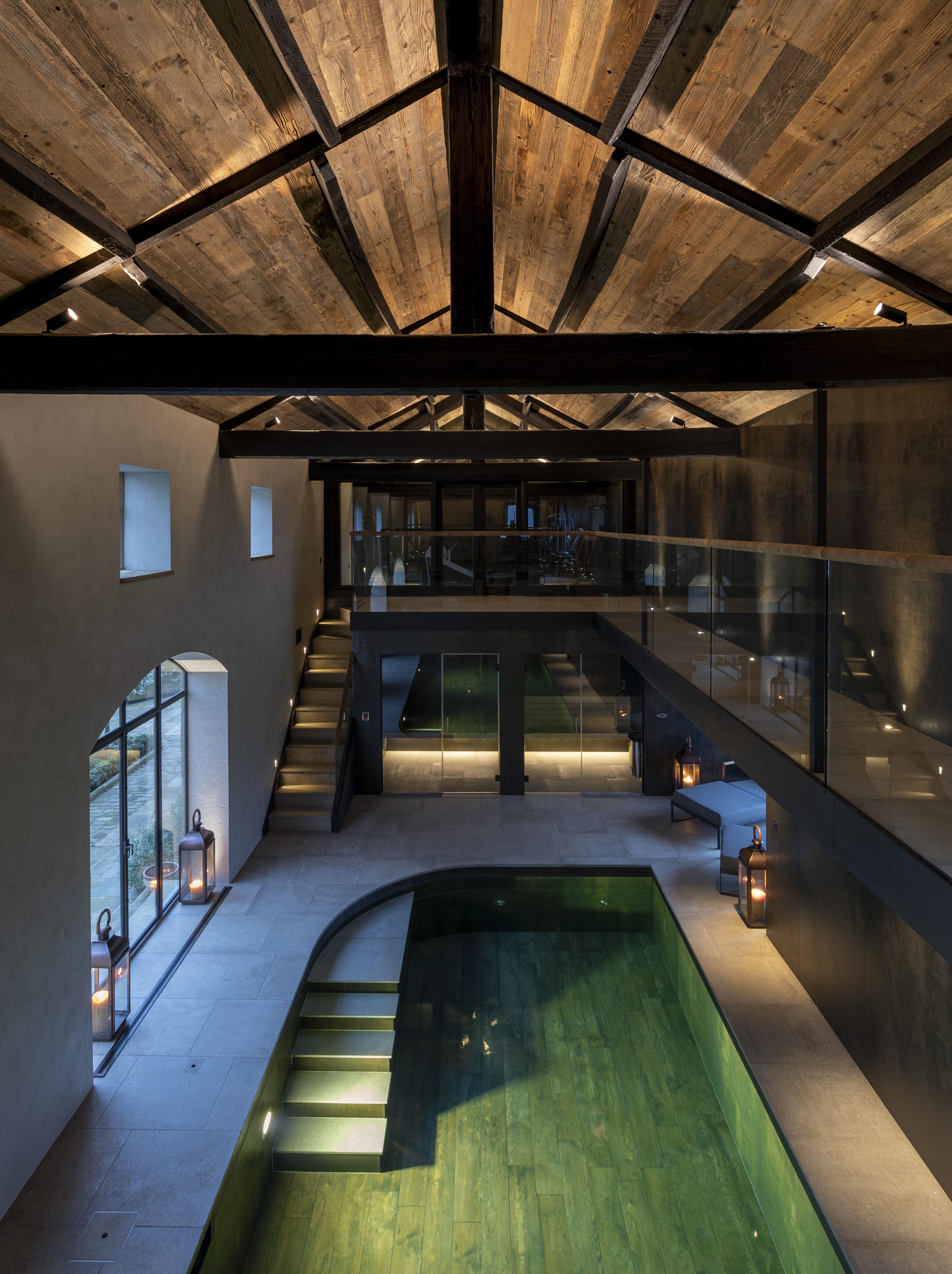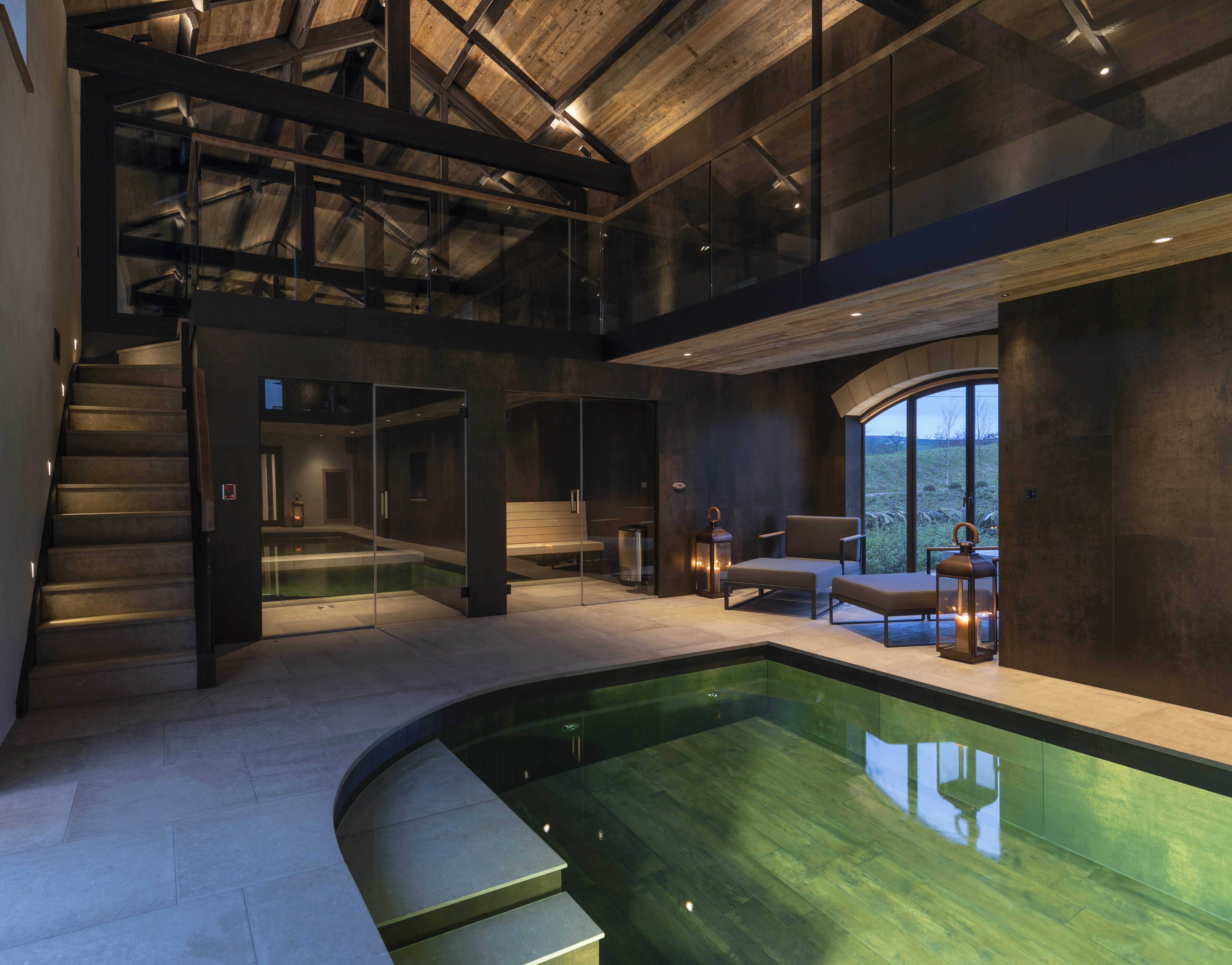 This previously converted barn has had a complete regeneration and interior redesign to create a stunning contemporary pool house, with a rustic and warm charm.